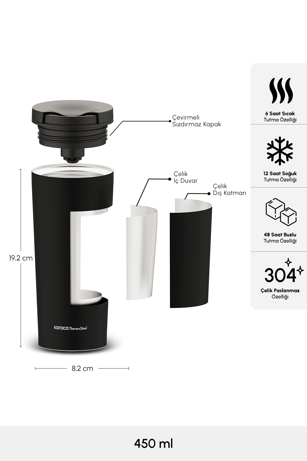 فلاسک مشکی کاراجاKaraca | 1.00023E+12 اورجینال