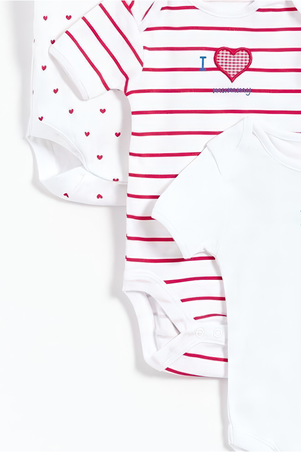 بادی نوزادی دخترانه طرح قلب تکه دوزی شده طرح قلب، بسته 3 عددی، 100% پنبه – سفید
