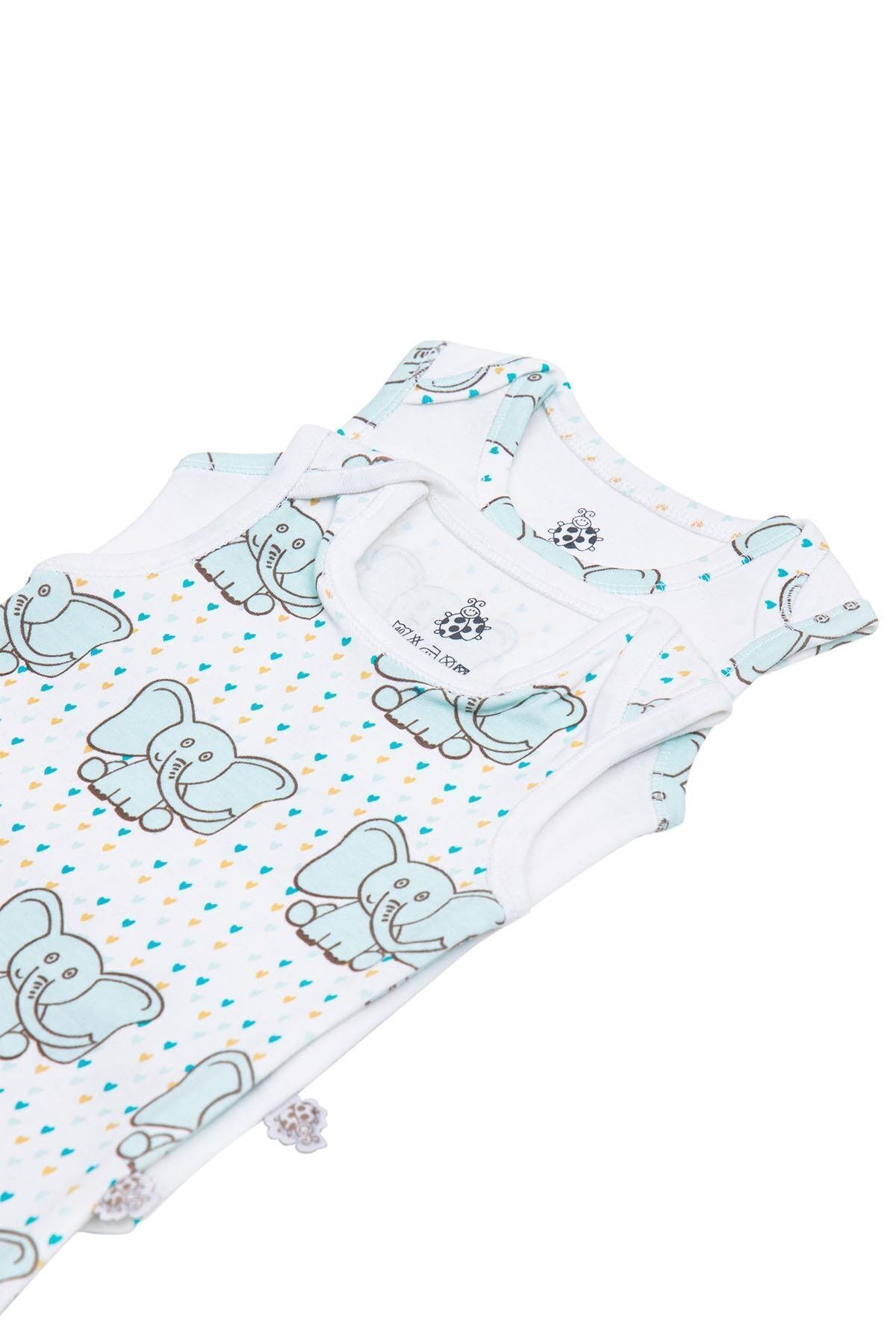 بادی نوزادی Borneo بسته ۲ عددی بدون آستین، ۱۰۰٪ پنبه ارگانیک، شانه شده، طرح سفید نعنایی