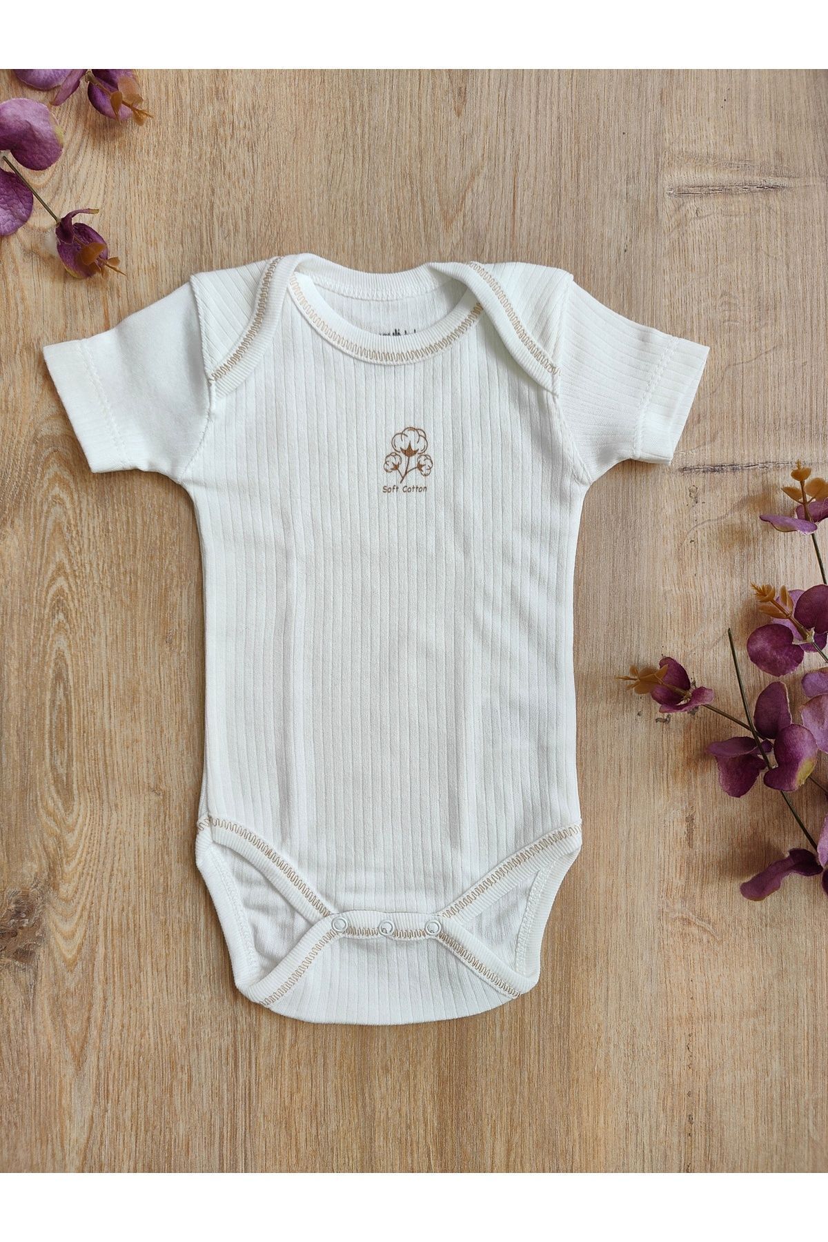 بادی نوزادی آستین کوتاه 4 عددی مدل Ecru آجدار، زیرپوش چسبی، 100% پنبه، هدیه فصلی
