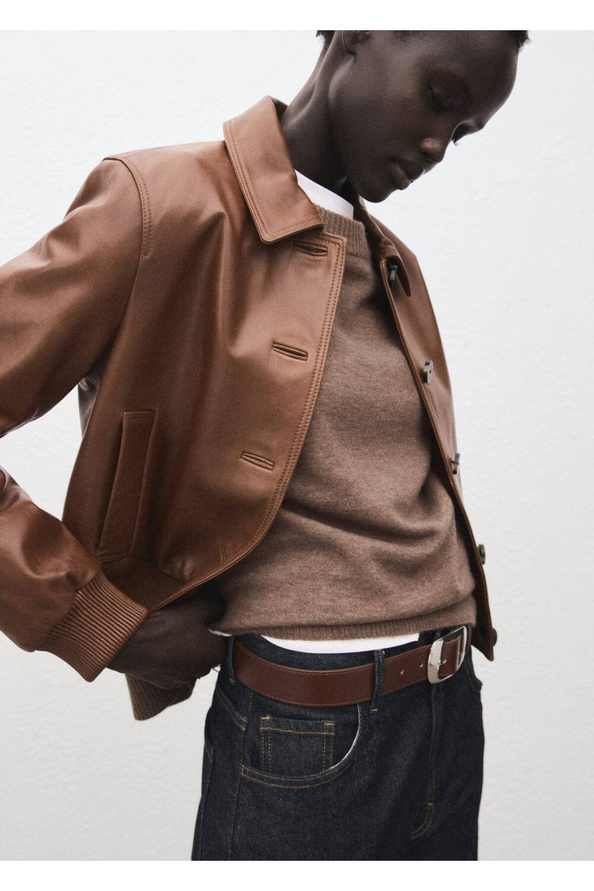 بافت و پلیور زنانه قهوه ای منگوMANGO | 17005812 اورجینال