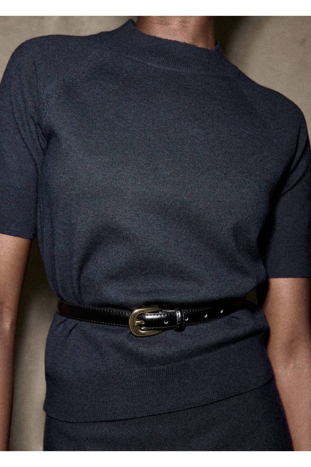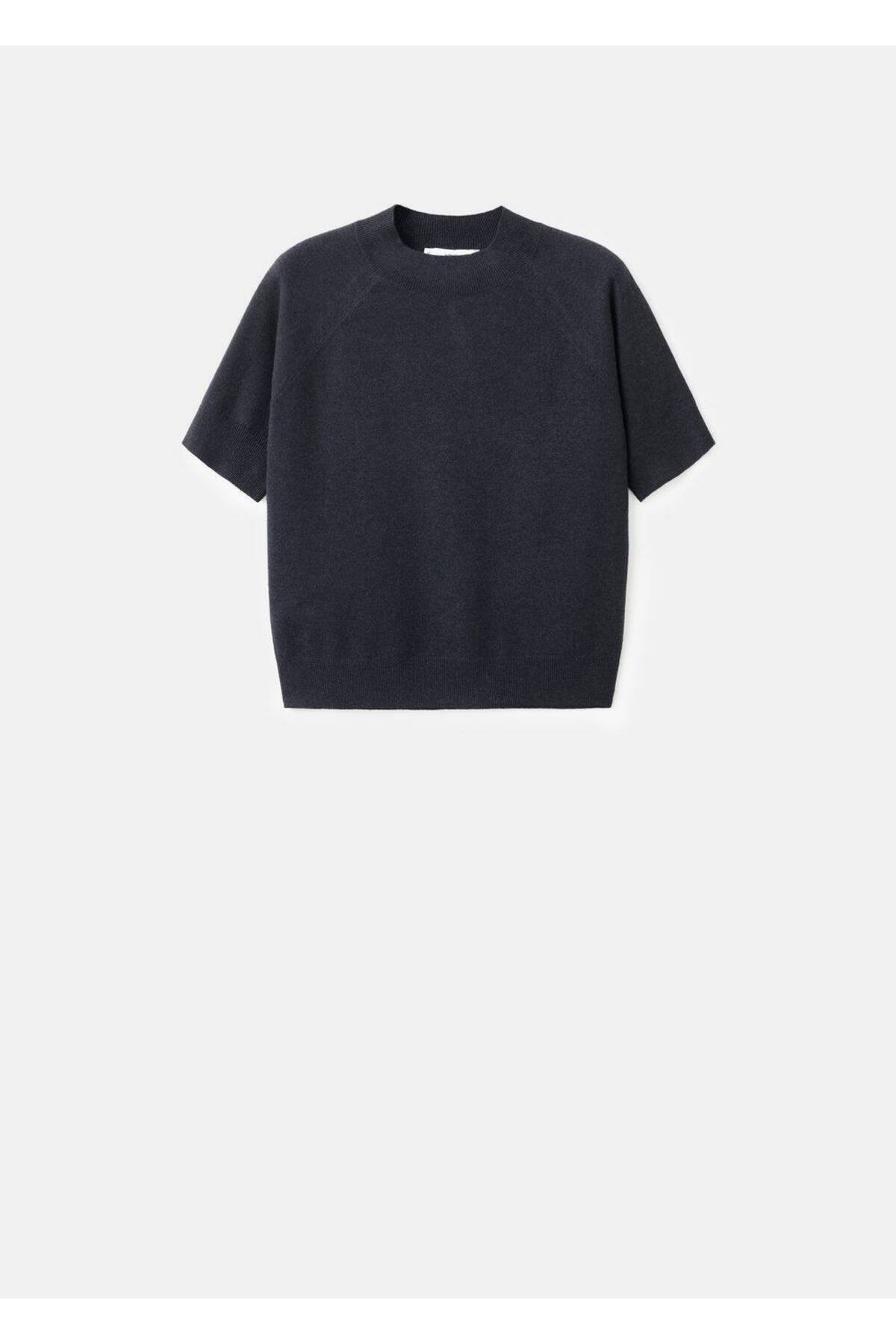 بافت و پلیور منگو آبی سرمه ای آستین کوتاه پشم | | نمایندگی منگو