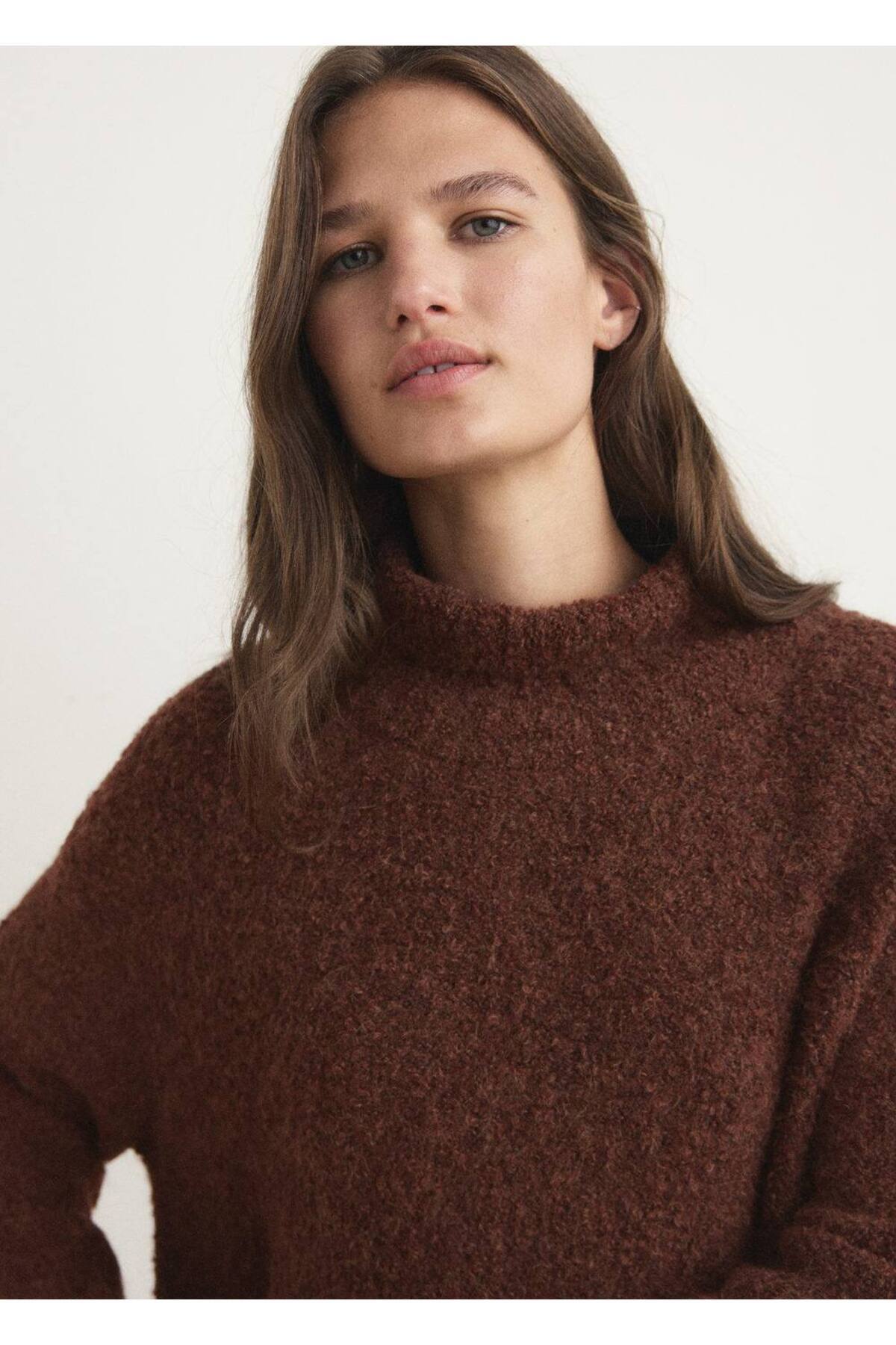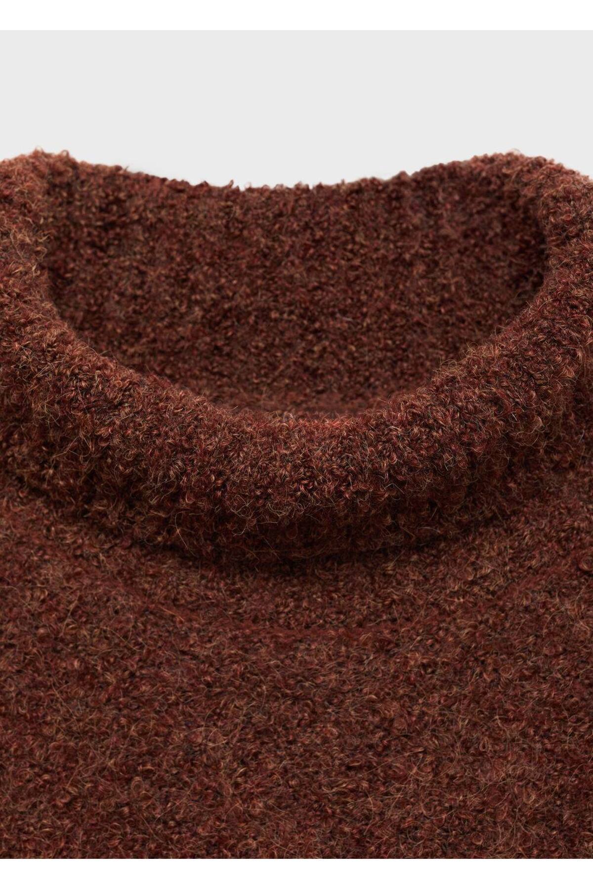 بافت و پلیور زنانه قهوه ای منگوMANGO | 17024109 اورجینال