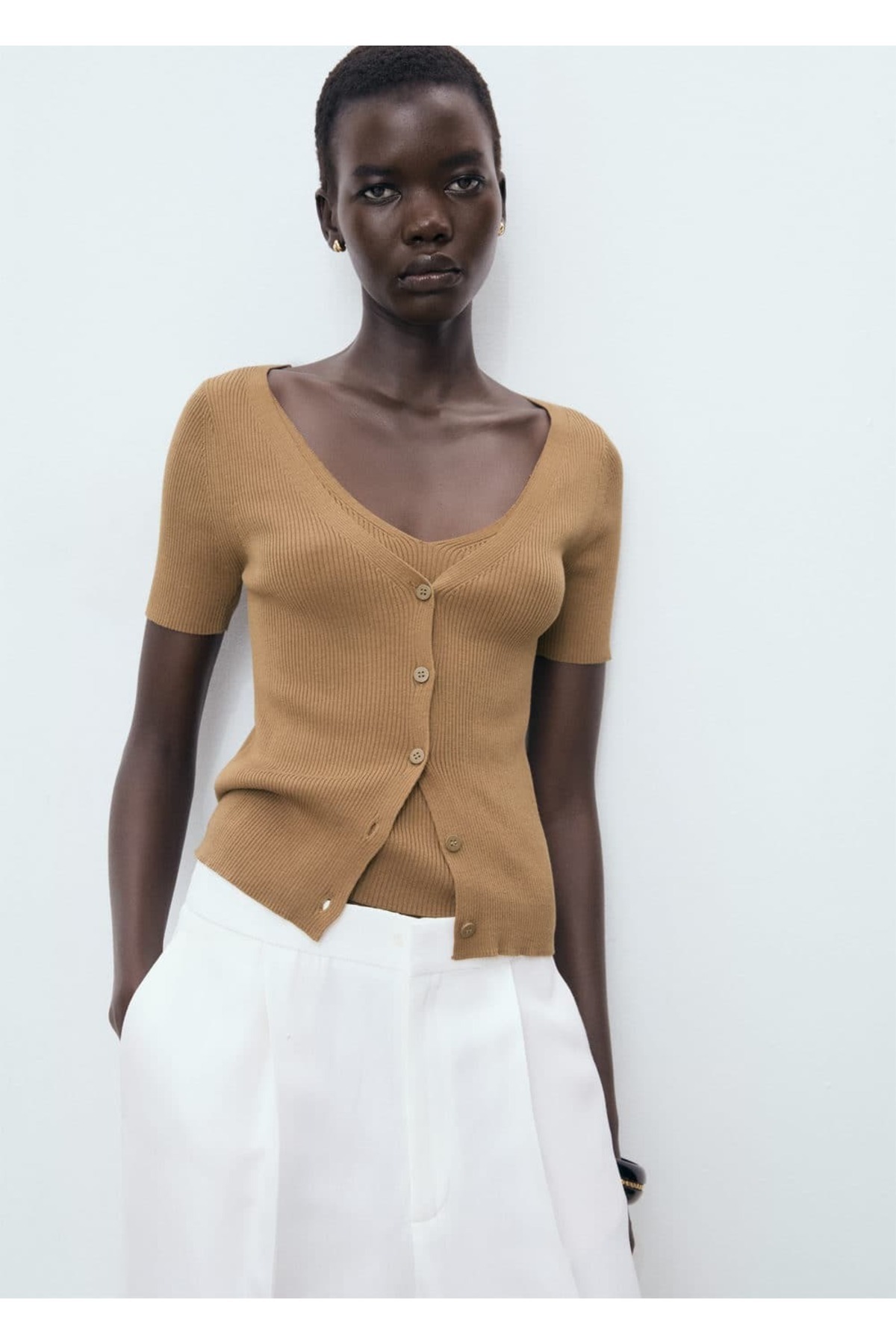 بافت و پلیور زنانه قهوه ای منگوMANGO | 17052901 اورجینال