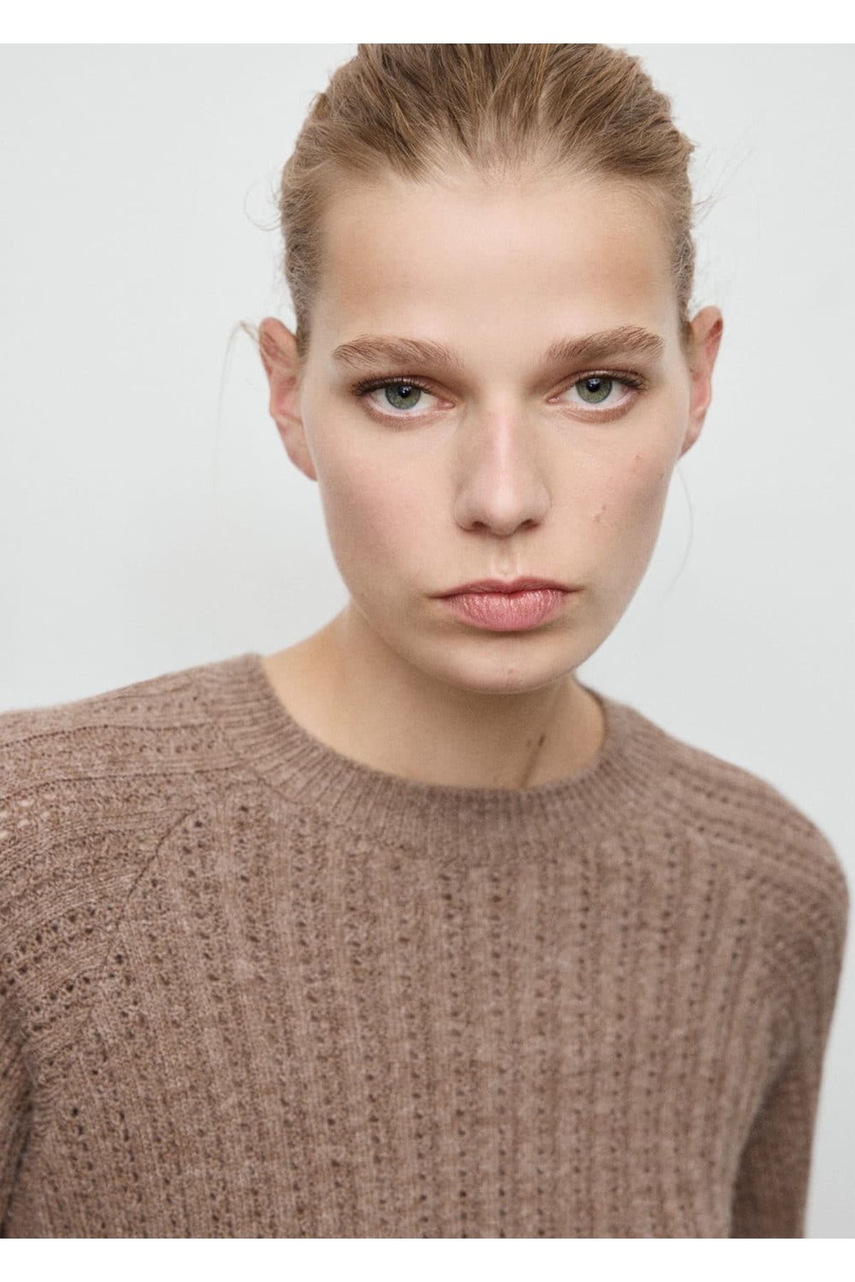 بافت و پلیور زنانه قهوه ای منگوMANGO | 27011313 اورجینال