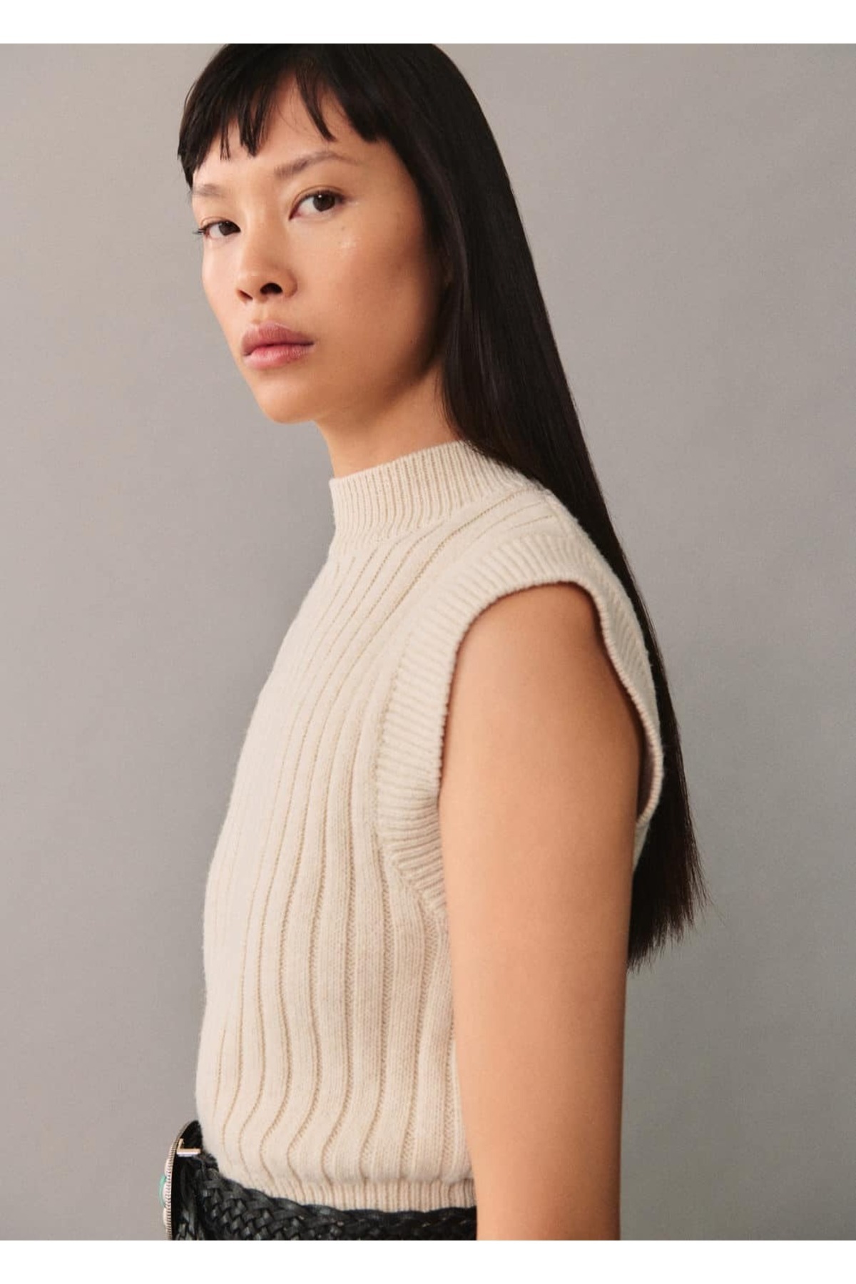 بافت و پلیور زنانه بژ منگوMANGO | 77095642 اورجینال