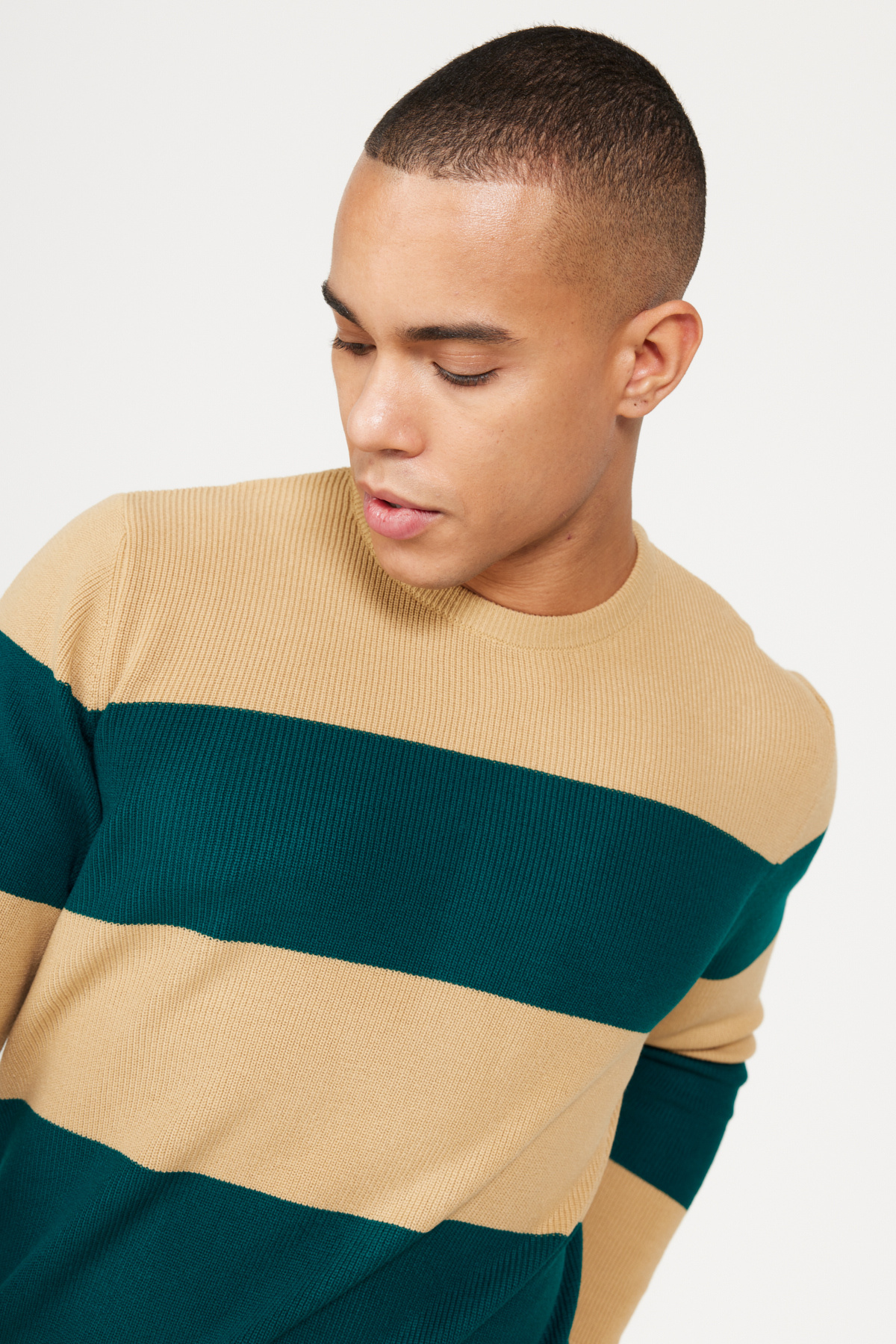 ژاکت بافتنی یقه گرد مردانه، رنگ سبز قهوهای شیری، بدون پرز، ضد پرز، سایز استاندارد