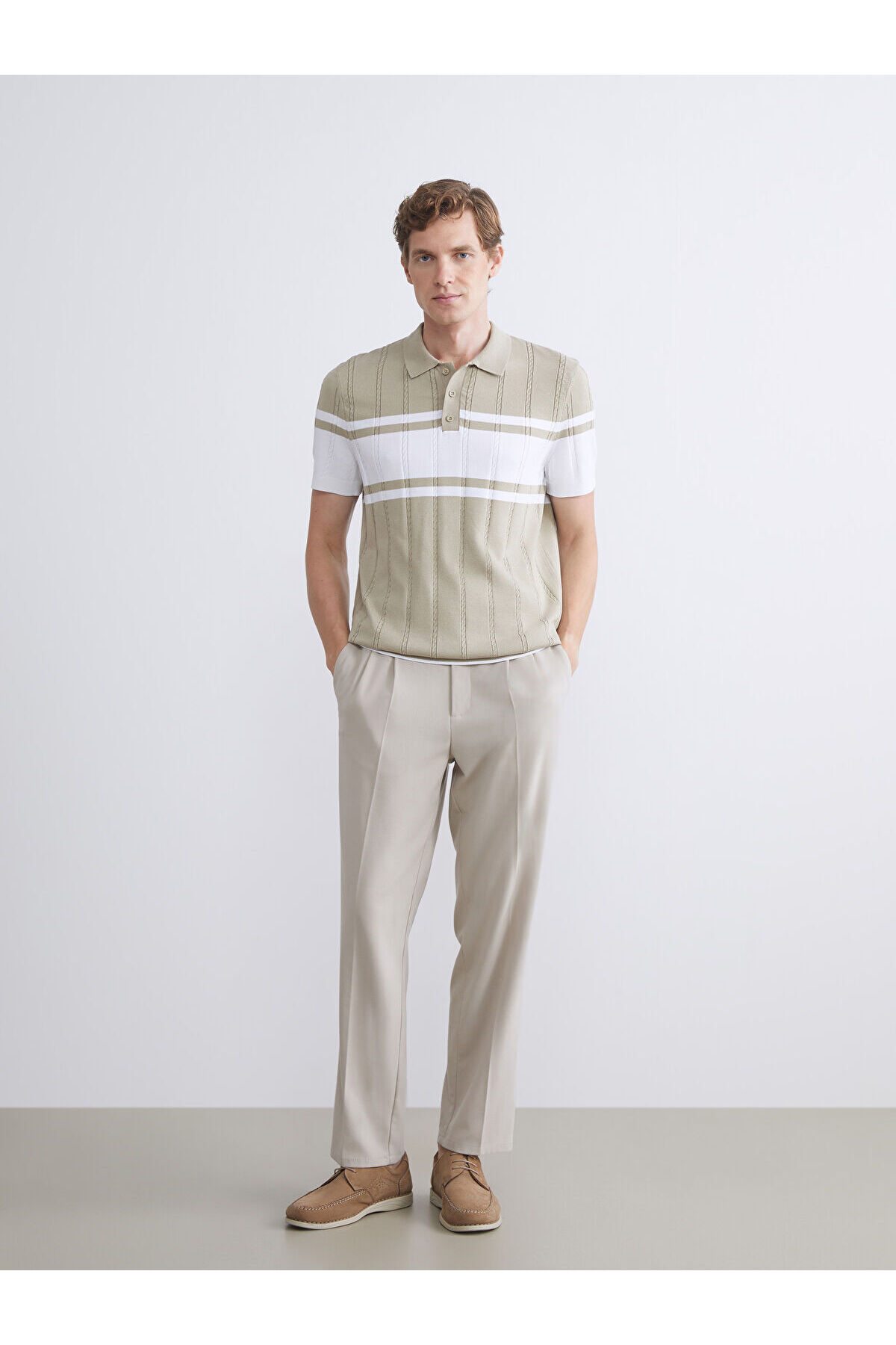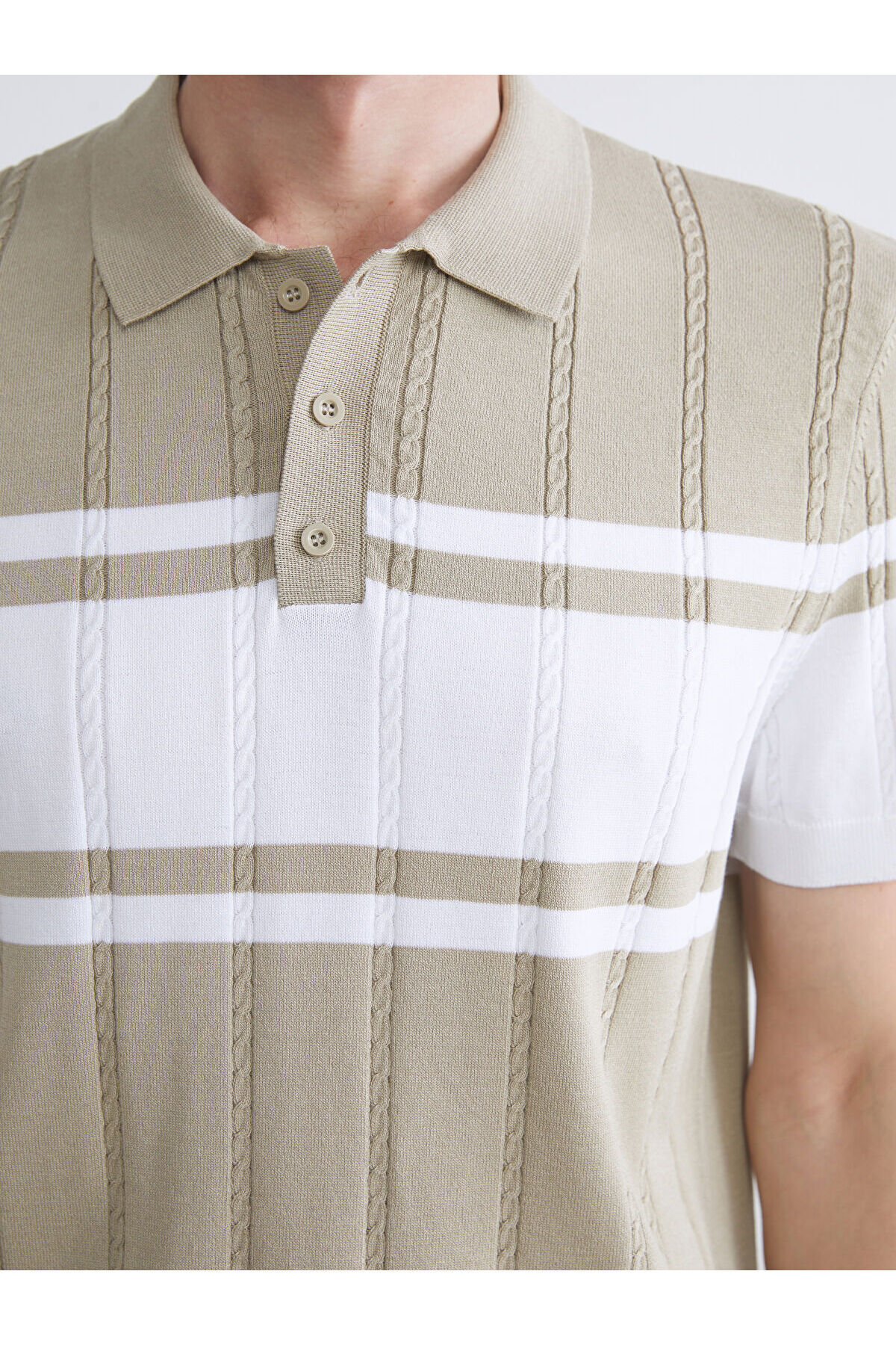 ژاکت بافتنی مردانه راه راه یقه پولو آستین کوتاه فصل جدید Peak