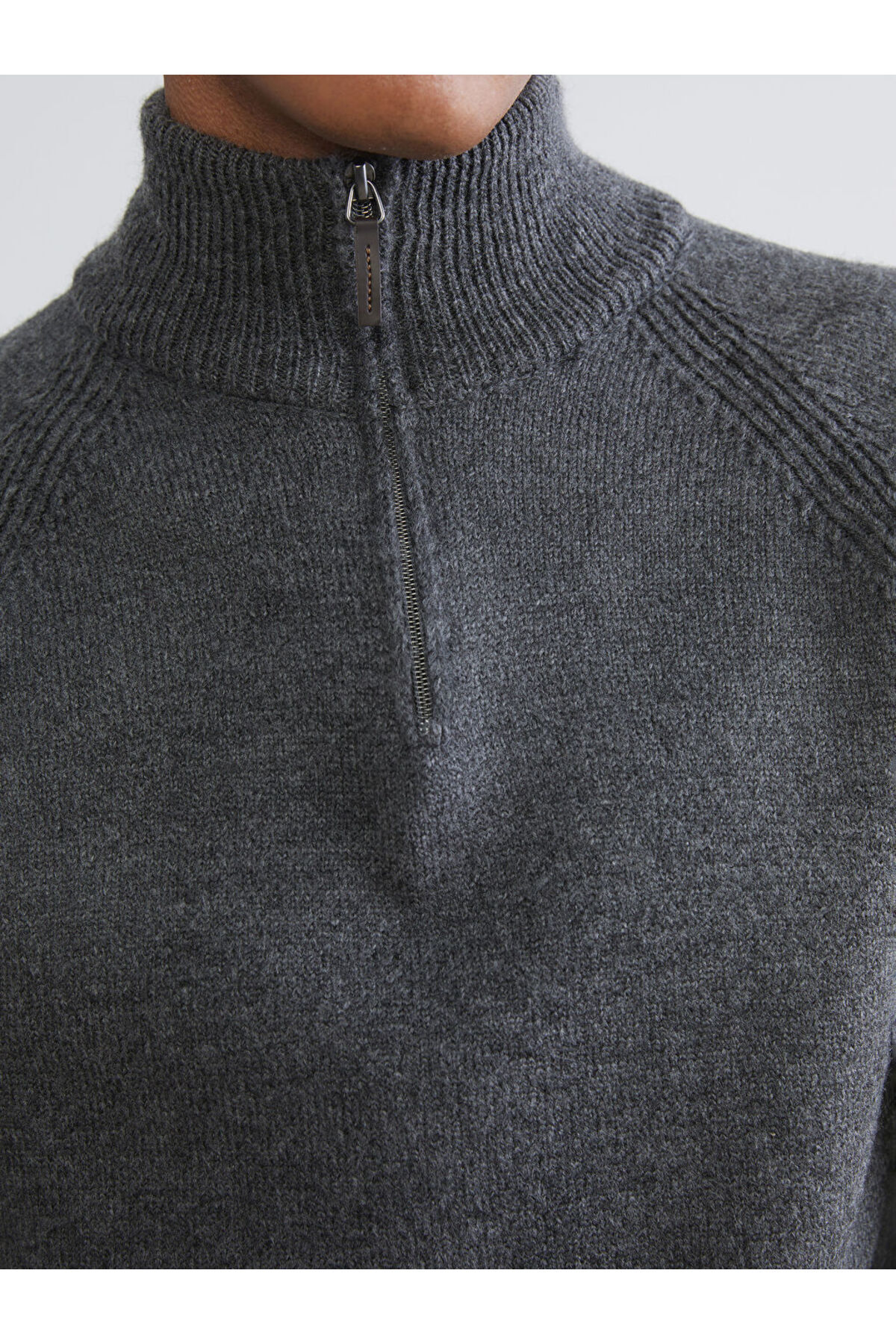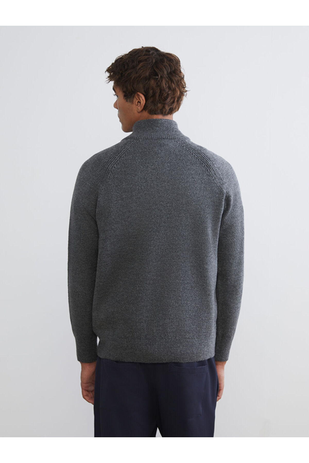 ژاکت بافتنی مردانه یقه ایستاده آنتراسیت