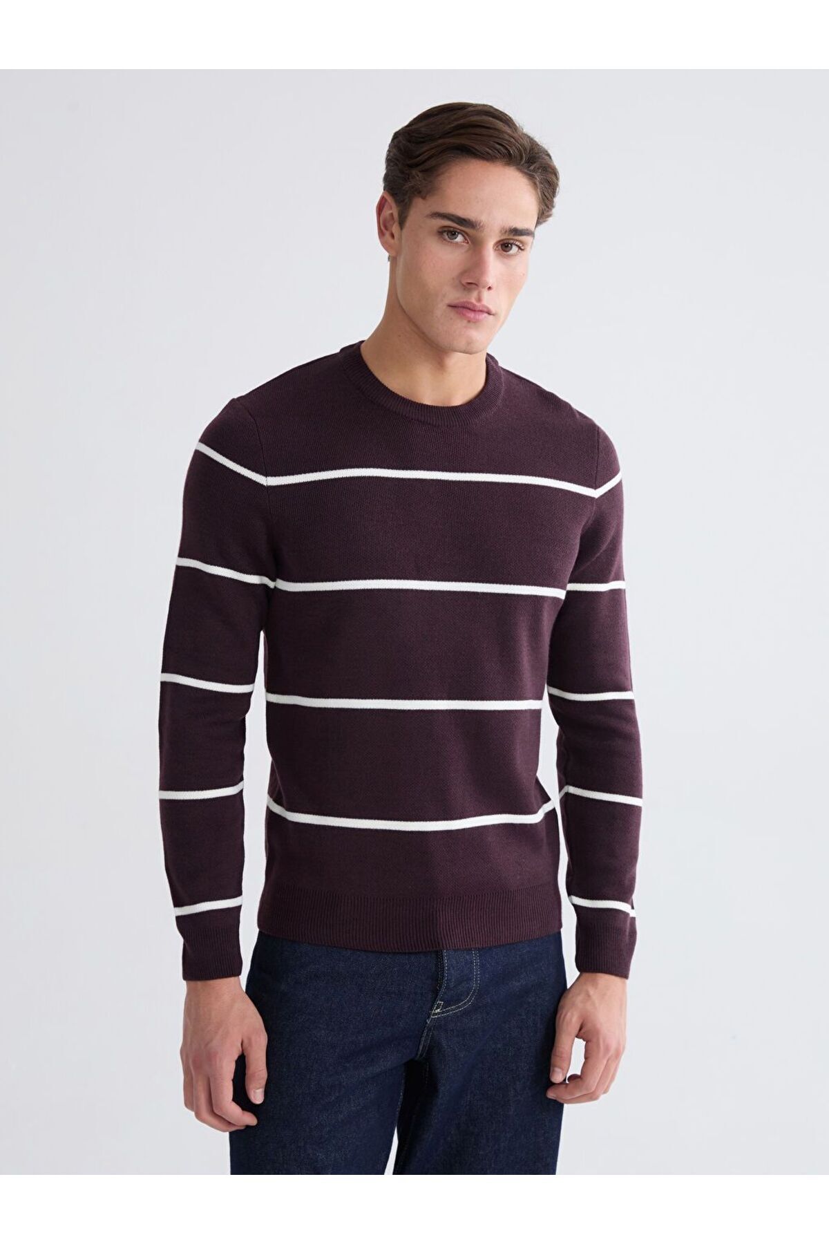 ژاکت بافتنی مردانه آستین بلند راه راه یقه گرد کلاسیک LCWAIKIKI