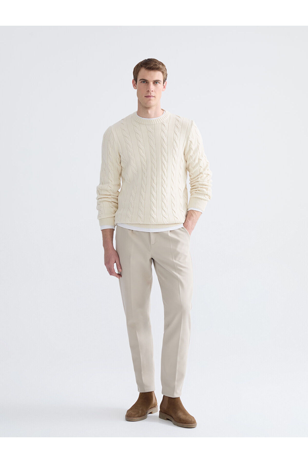 بافت و پلیور مردانه بژ ال سی وایکیکی | W5M884Z8-FDN-218052 اورجینال