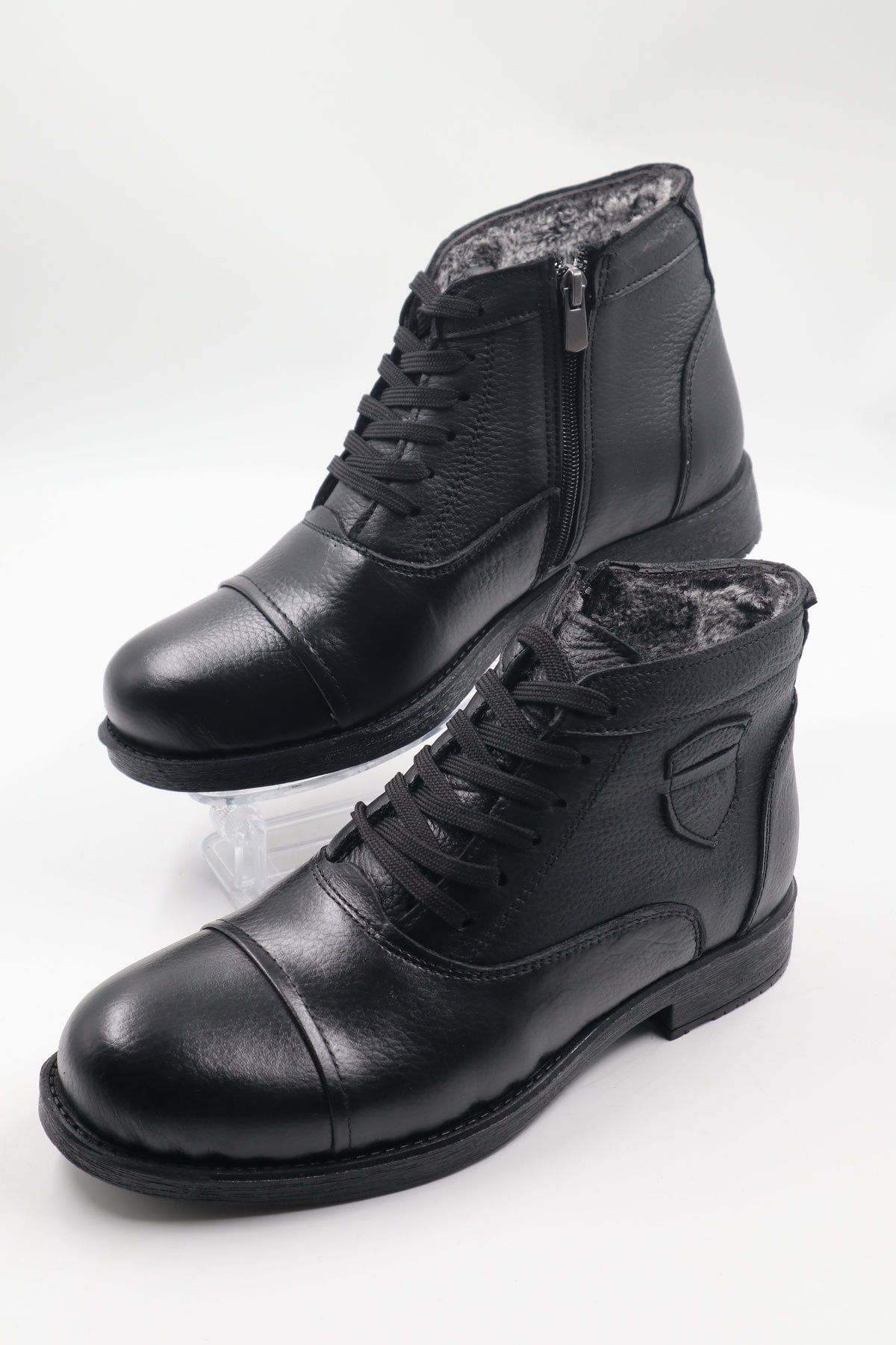 چکمههای مردانه چرم اصل، مشکی، خزدار، غیررسمی