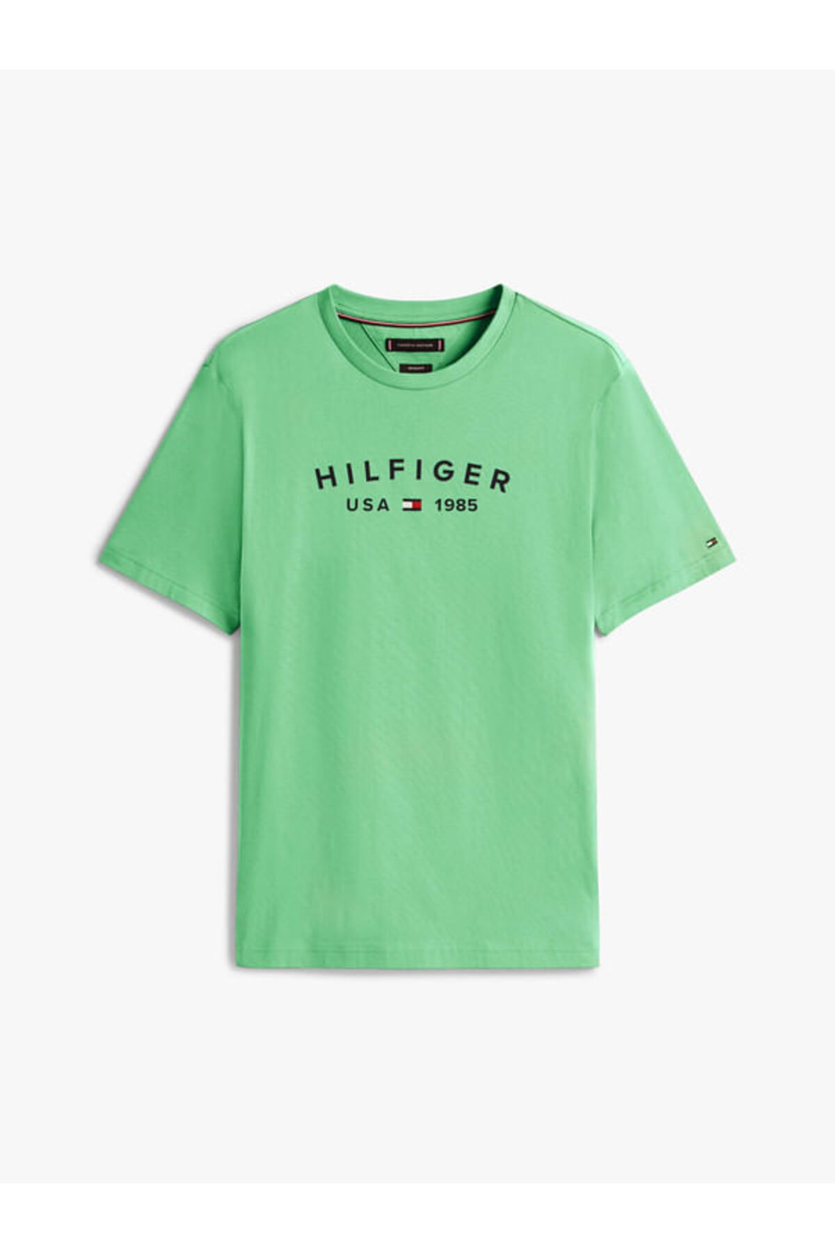 تیشرت آستین کوتاه مردانه یقه گرد تامی هیلفیگر طرح متن اسلیم فیت سبز MW0MW39356-L3J