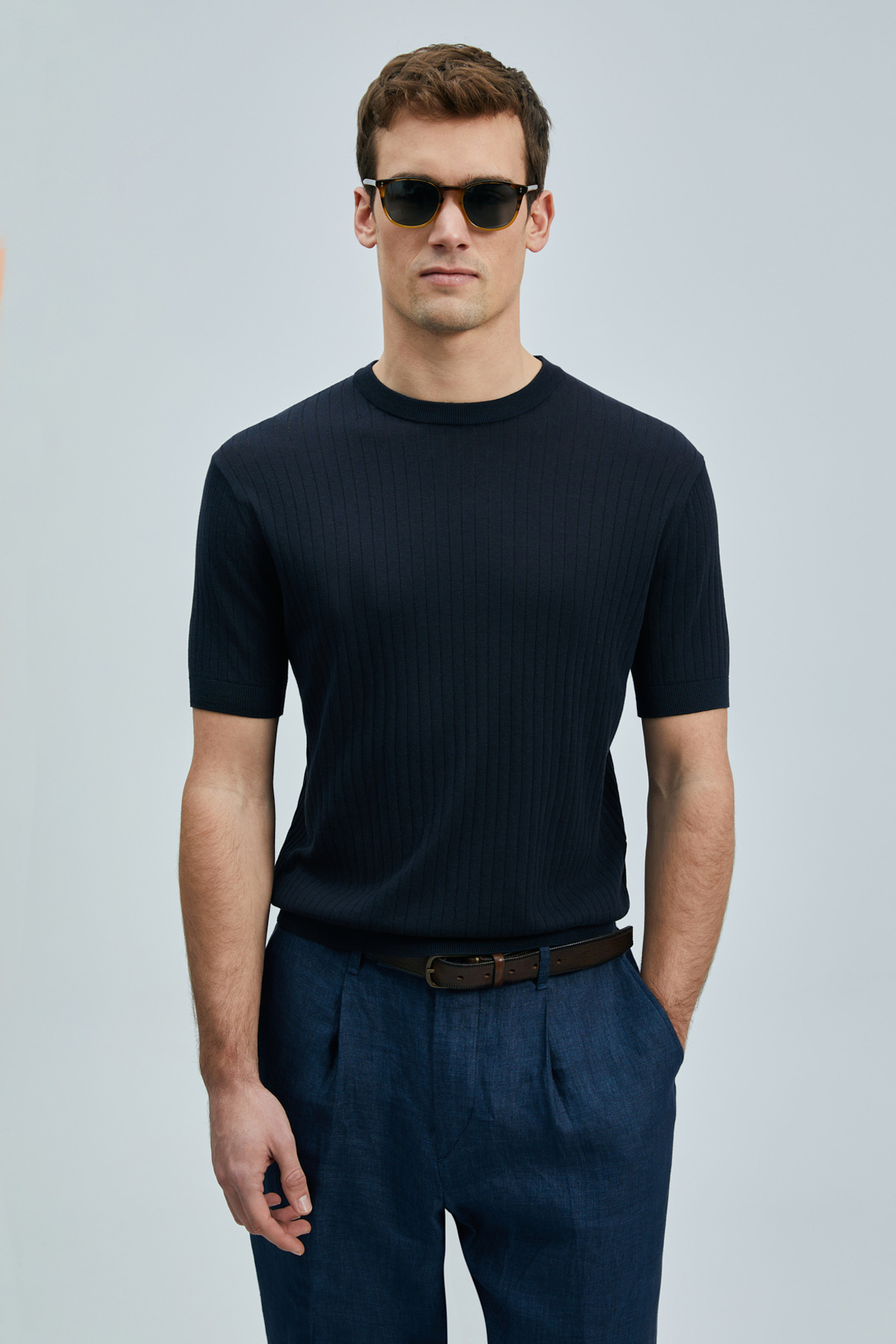 تیشرت مردانه آبی سرمه ای لوفیان | 111090097-25k اورجینال
