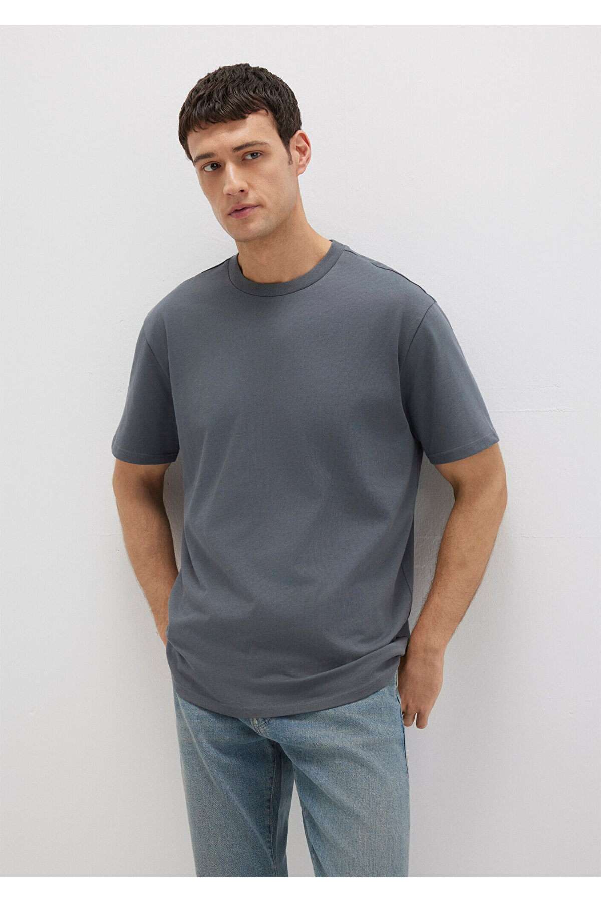 تیشرت یقه گرد آنتراسیت طرح ساده، گشاد / برش آزاد و راحت 0611596-80776