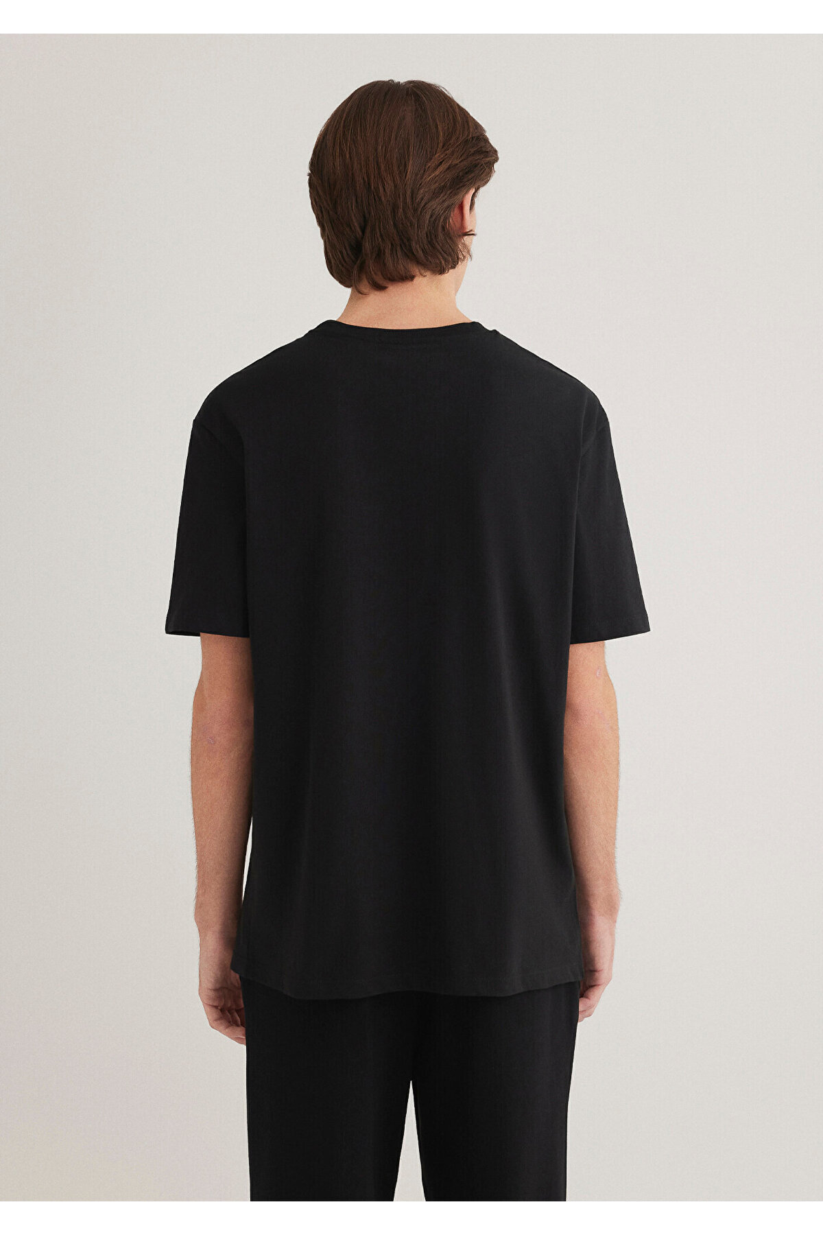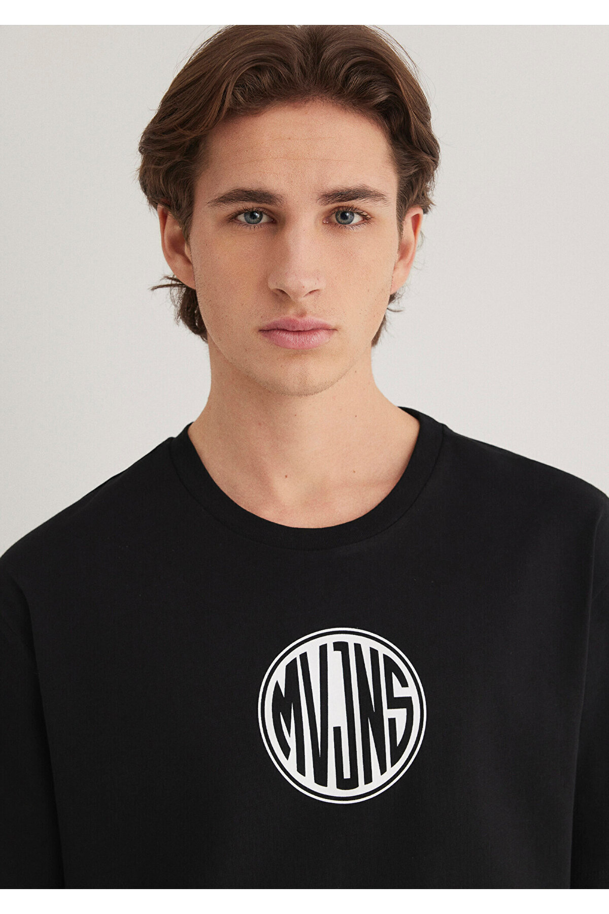تی‌شرت مشکی طرح‌دار MVJNS گشاد / گشاد، راحت، برش‌دار 0612155-900