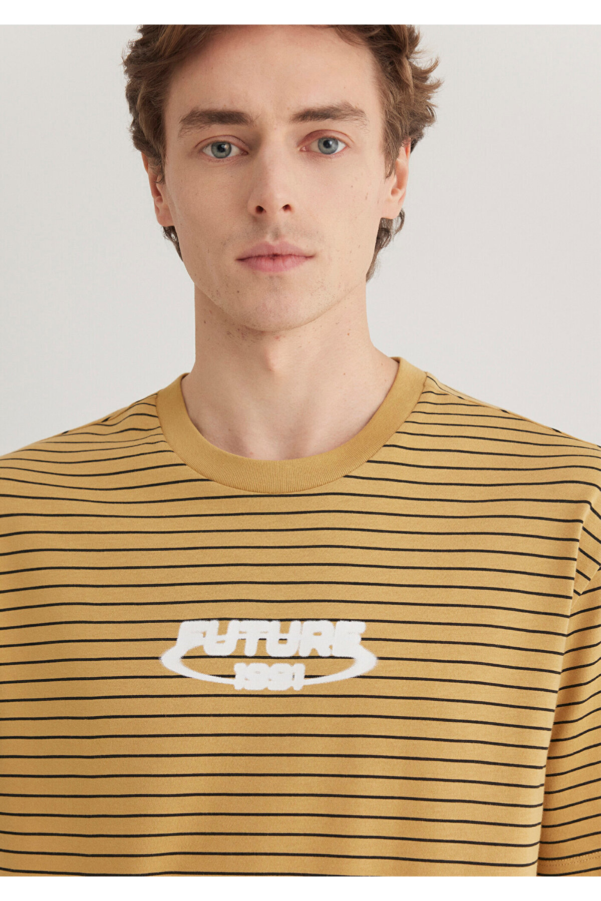 تیشرت راه راه طرح خردلی طرح گشاد / برش آزاد و راحت 0612495-70205