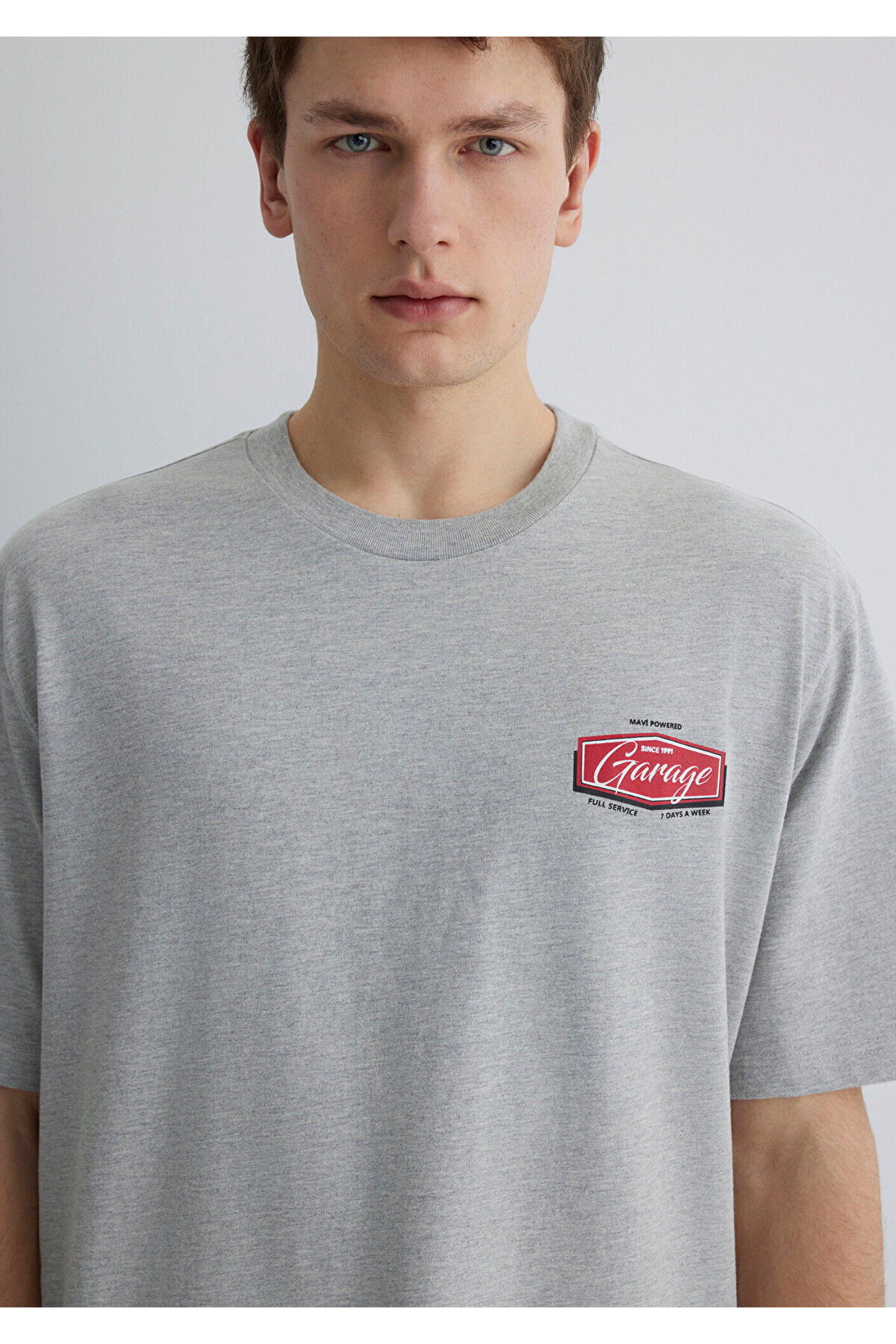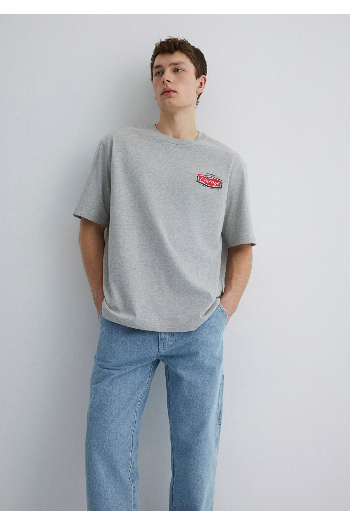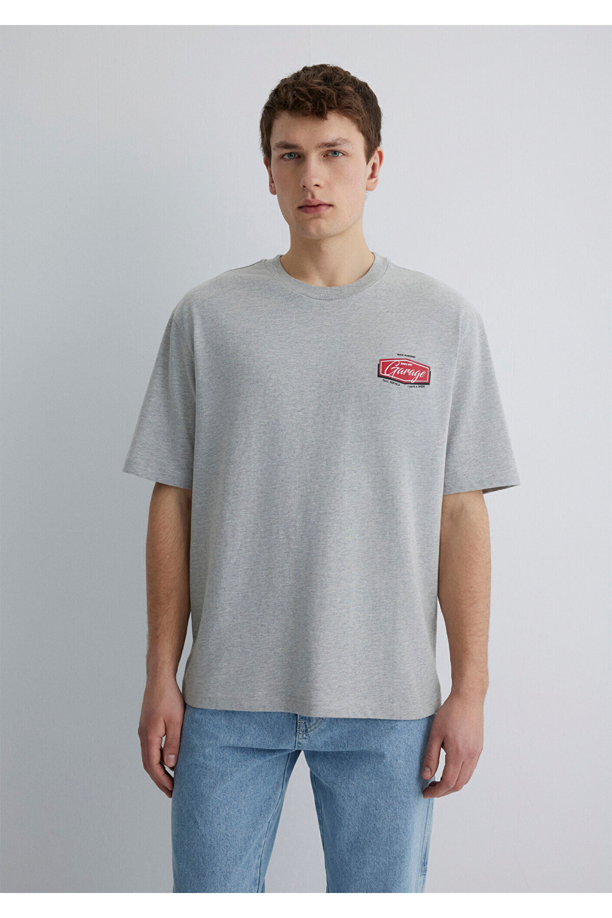 تیشرت خاکستری طرح گاراژ، فیت ریلکس / برش ریلکس 0612605-80196