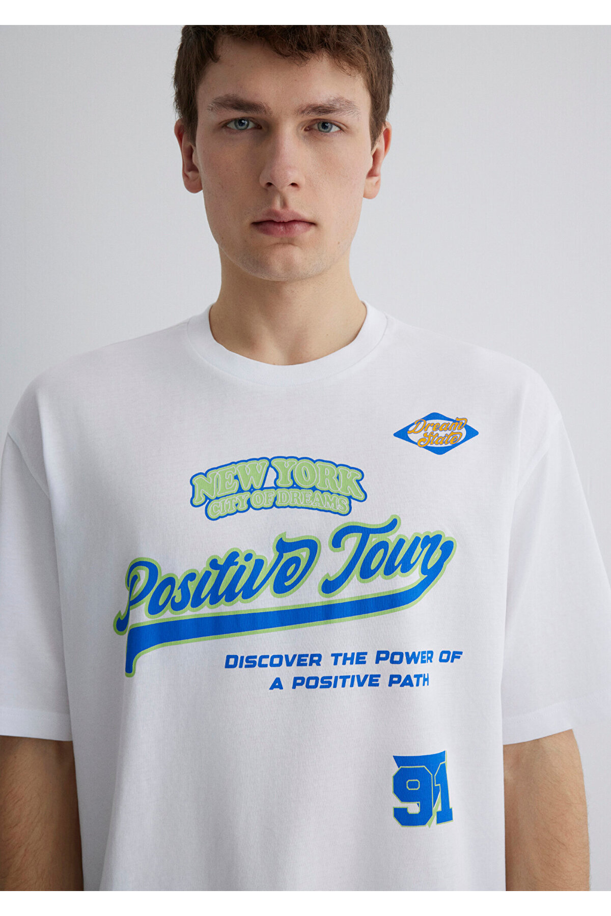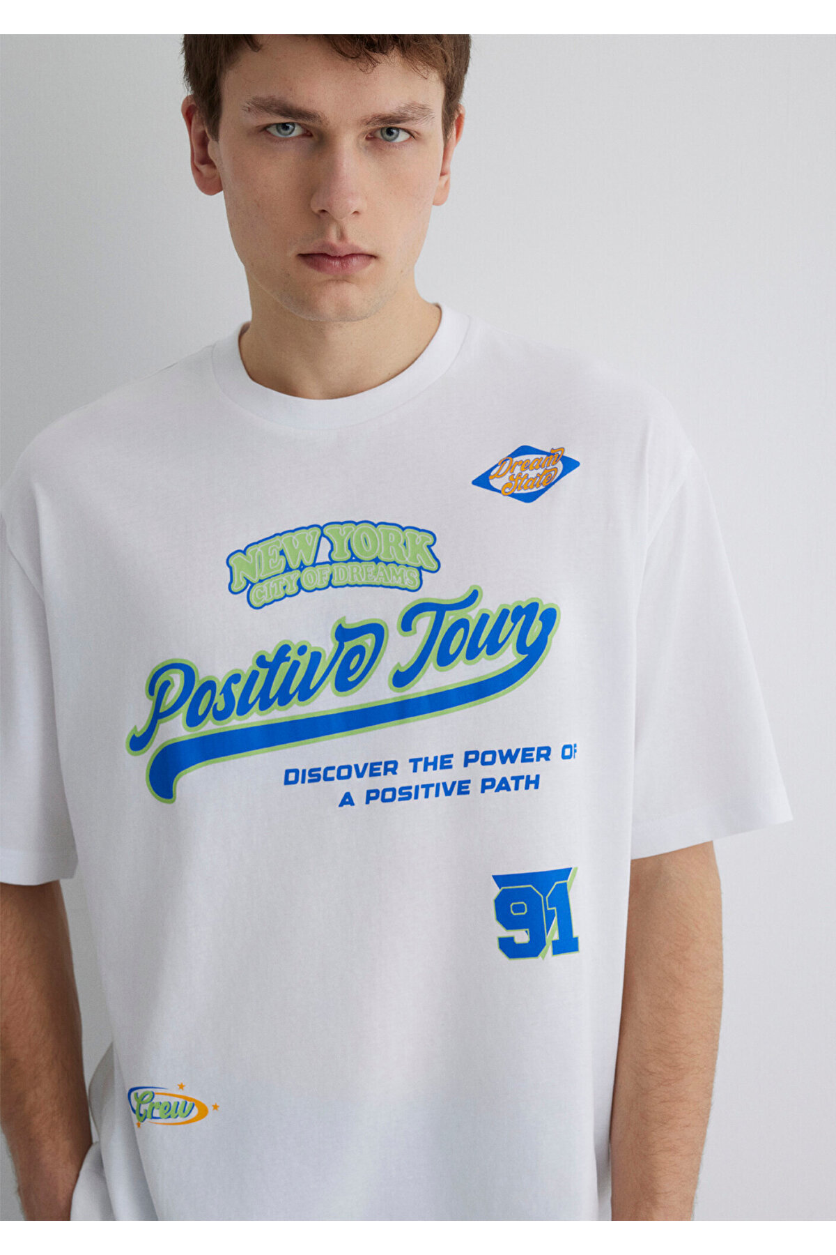 تیشرت سفید طرحدار فیت ریلکس / برش ریلکس 0612814-620