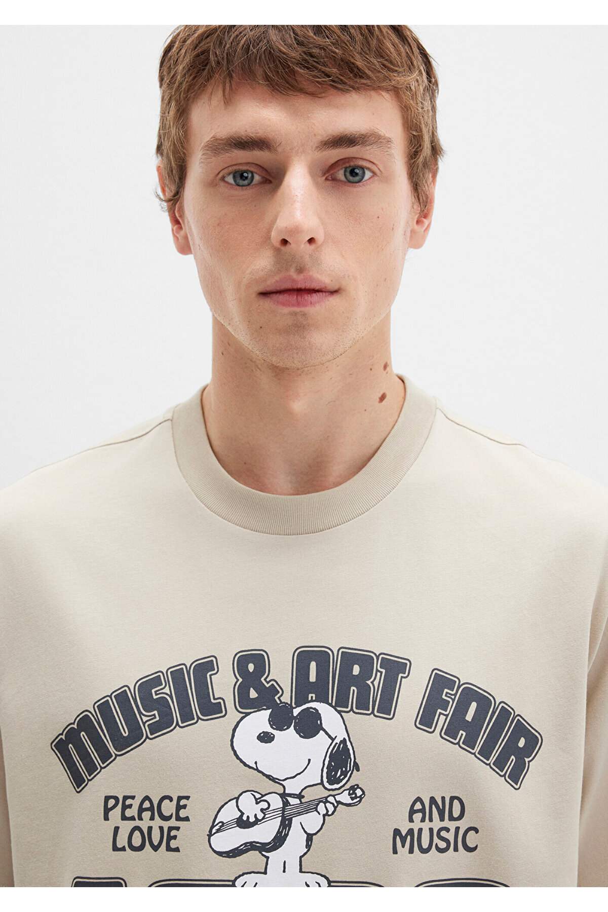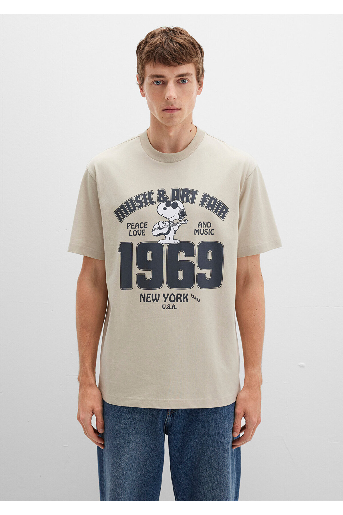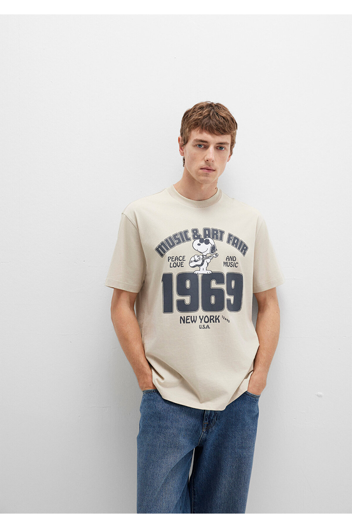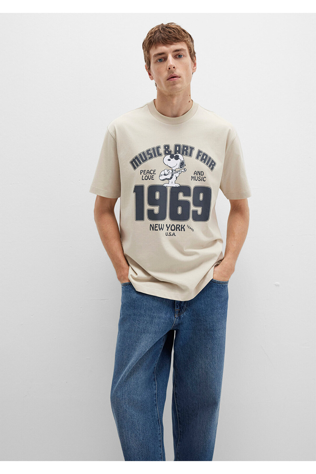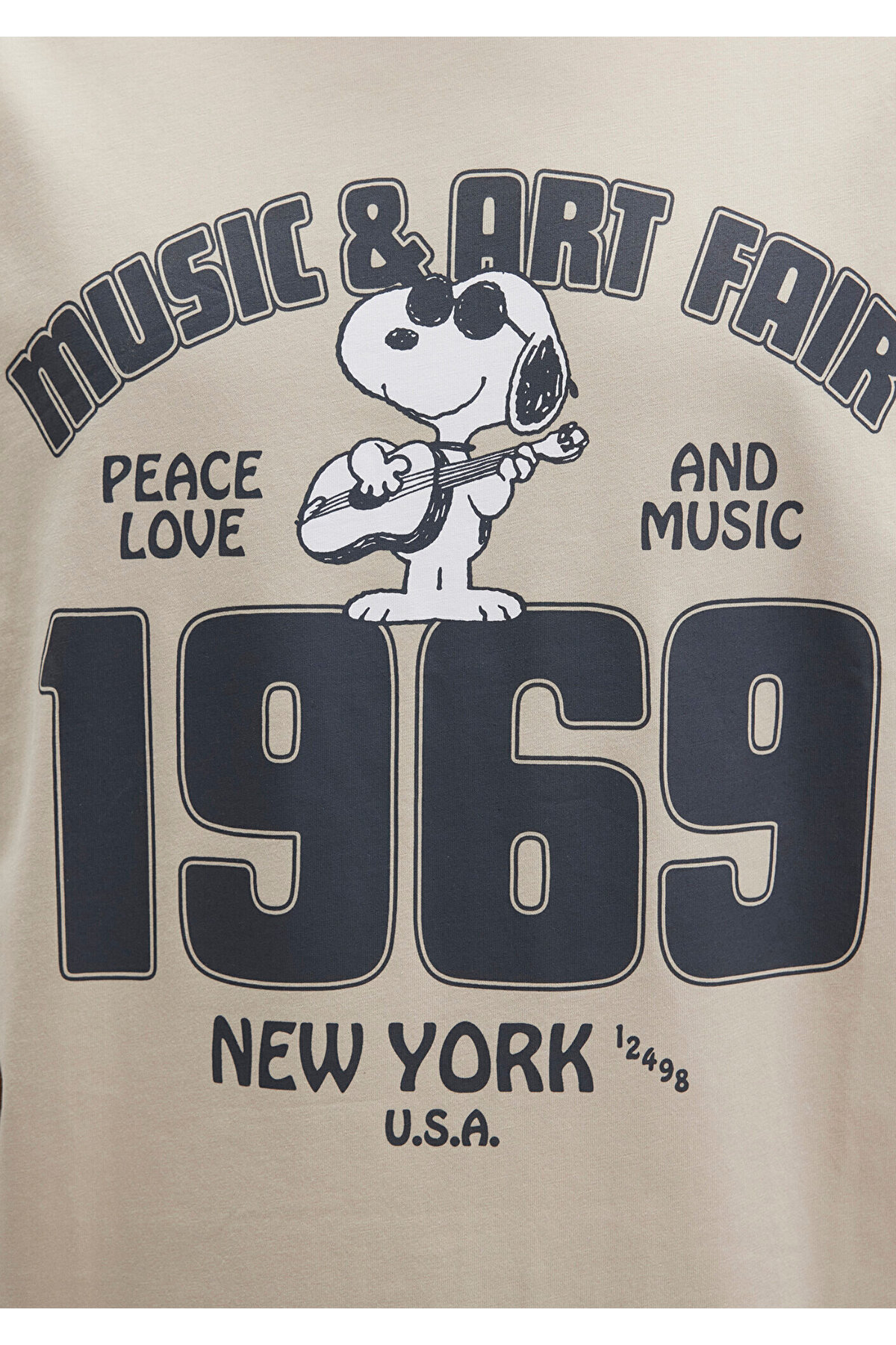 تیشرت طرحدار اسنوپی بژ، گشاد / گشاد، راحت، برشدار، 0612928-70322