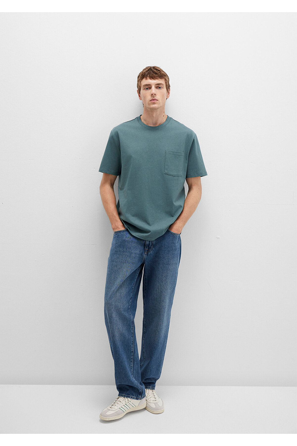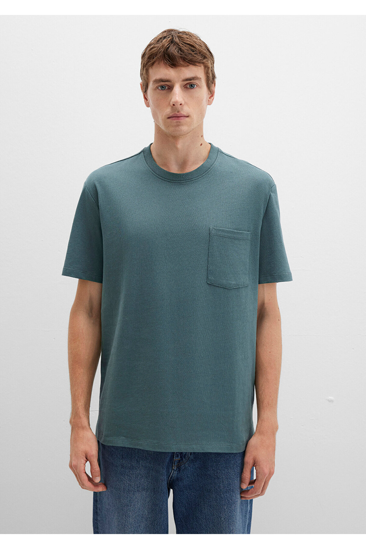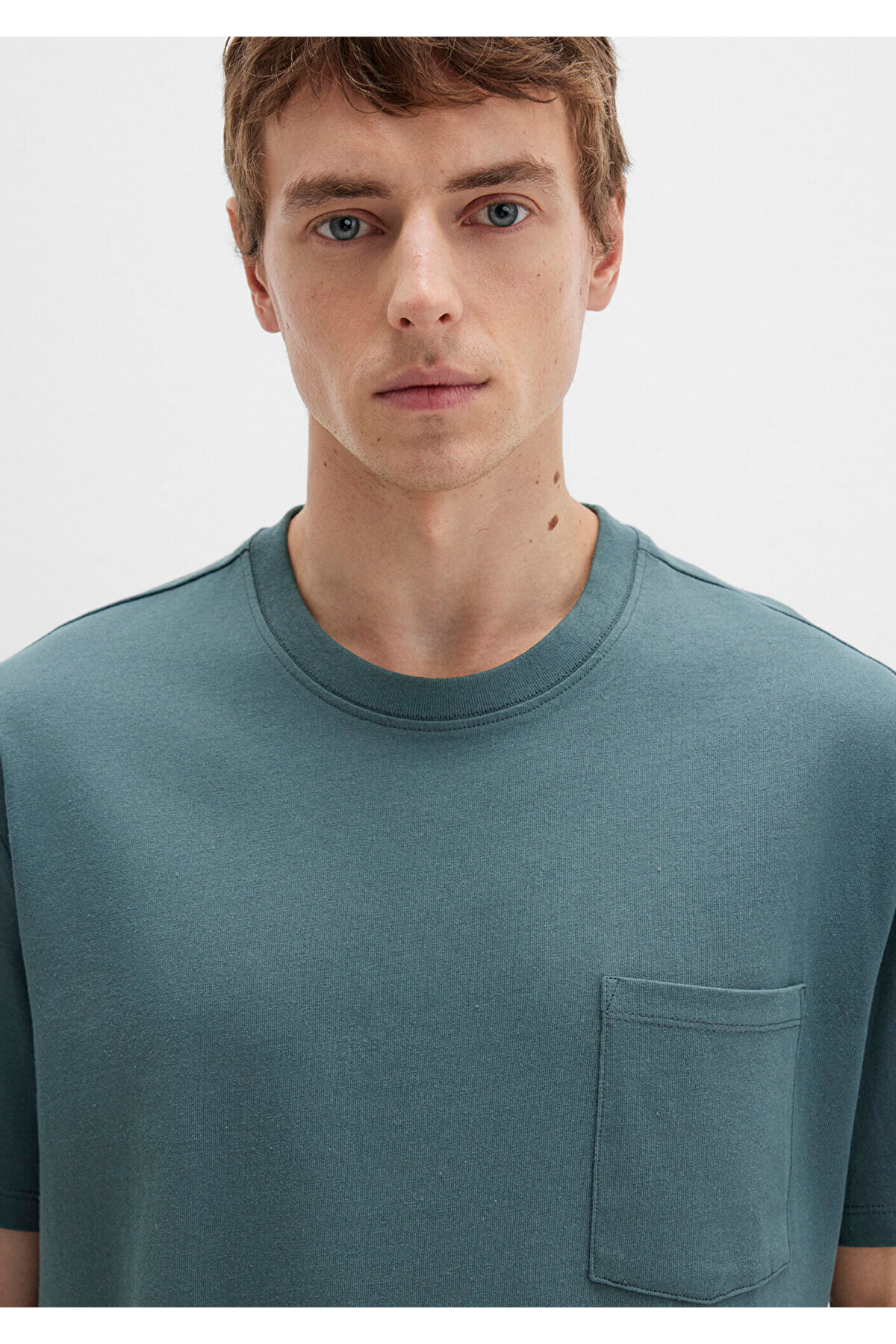 تیشرت ساده سبز با جزئیات جیبدار، گشاد / برش آزاد و راحت 066248-71577