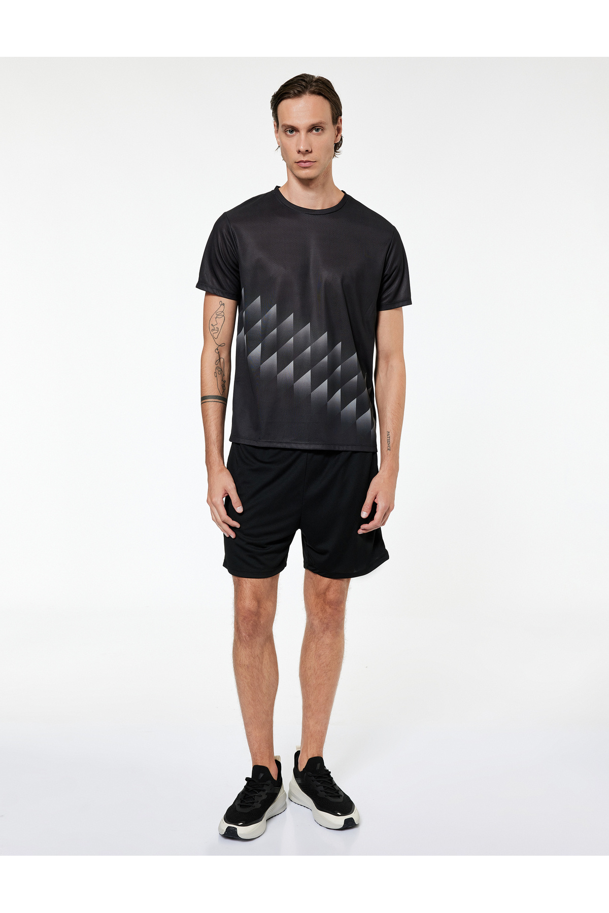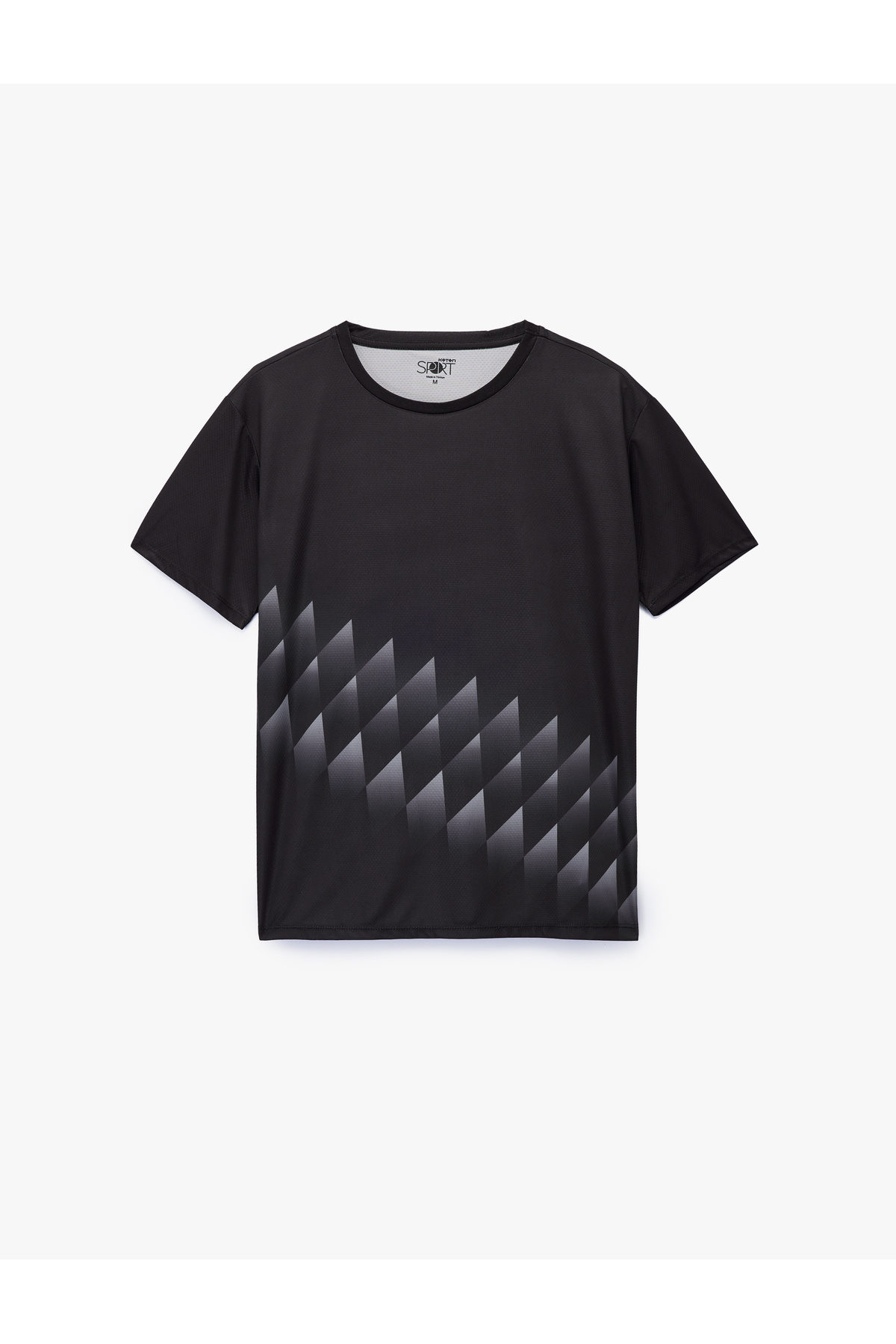 تیشرت ورزشی یقه گرد طرحدار آستین کوتاه با برش آزاد