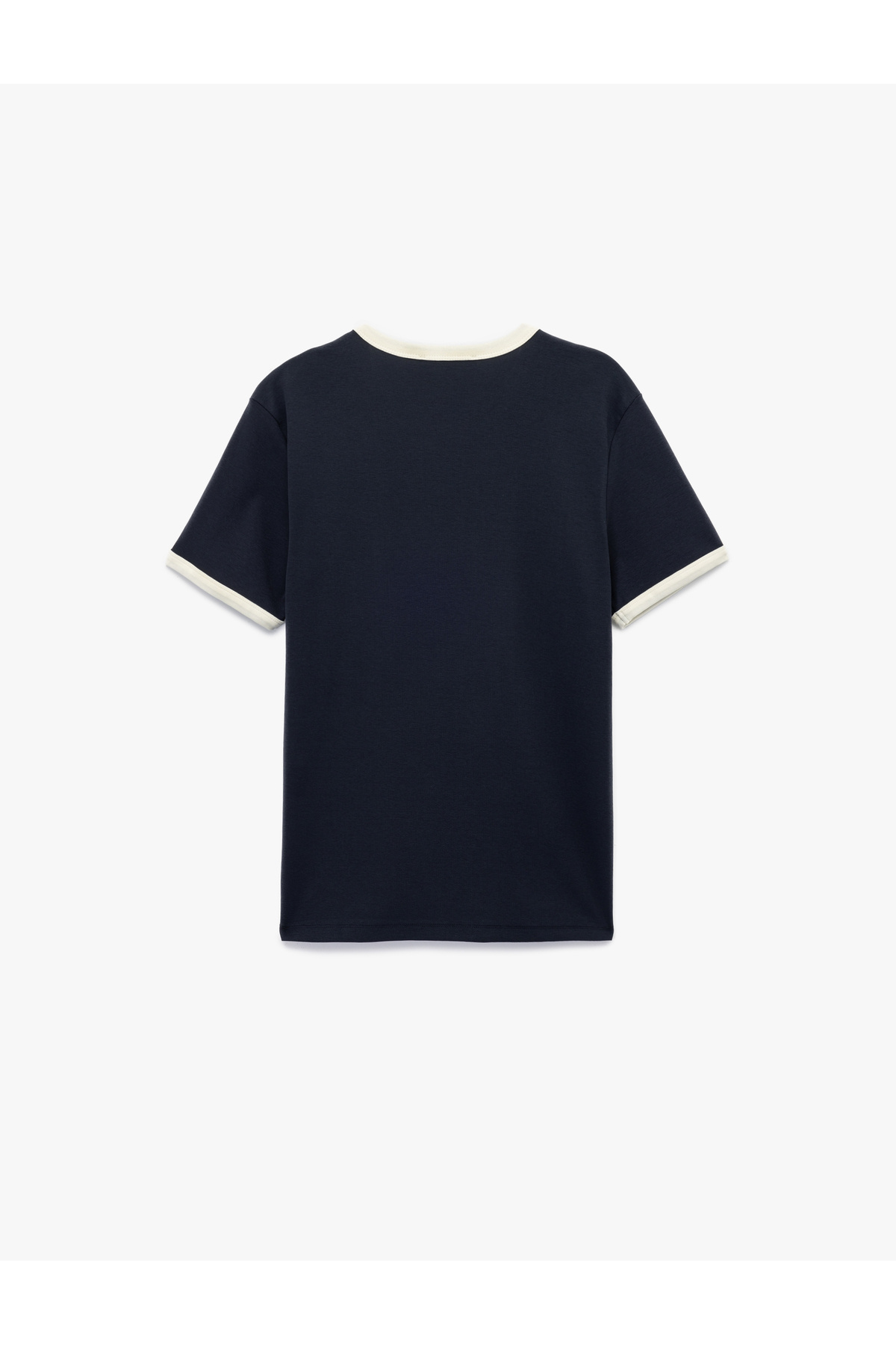 تیشرت آستین کوتاه یقه گرد، پارچه سفت، رنگ متضاد، جنس نخی اسلیم فیت.