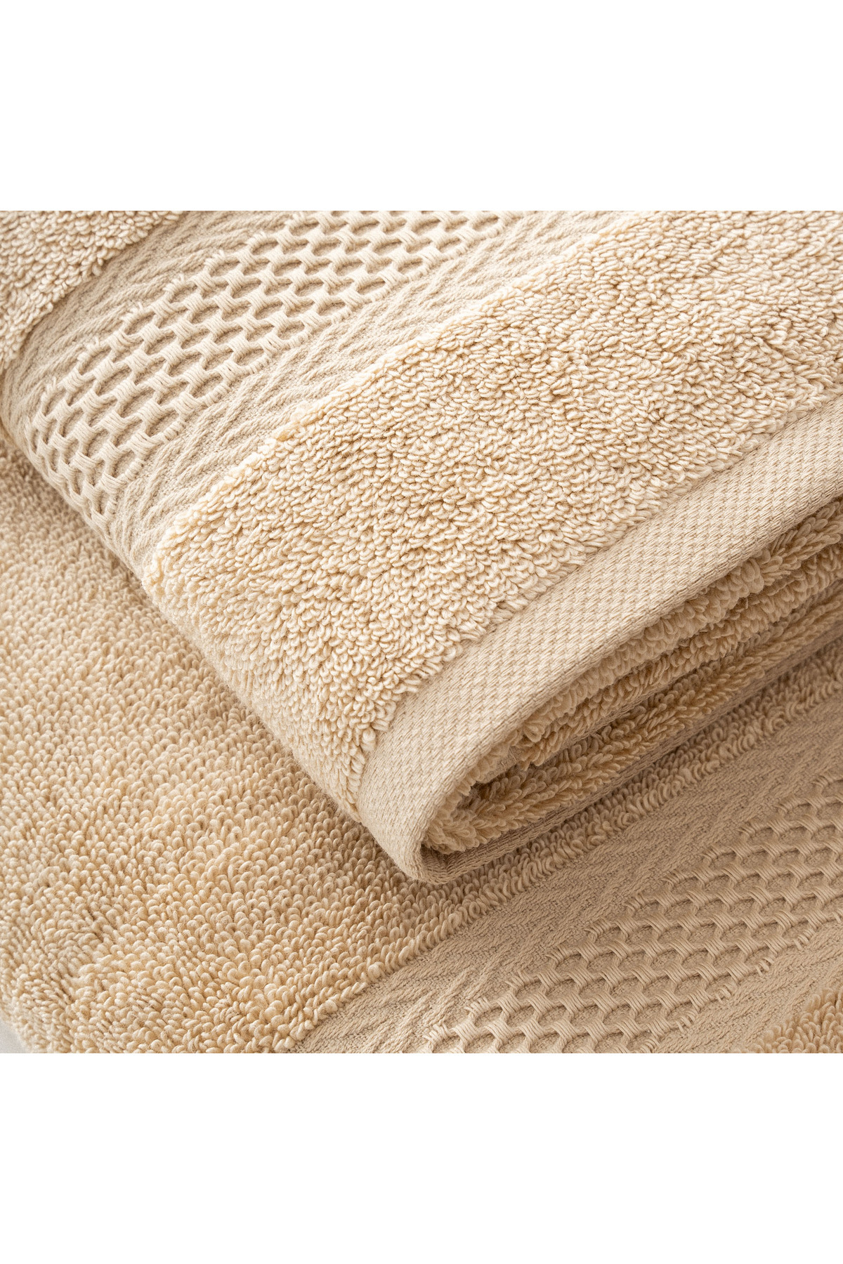 ست حوله سه تکه Auraline، ۱۰۰٪ پنبه ارگانیک، بژ روشن