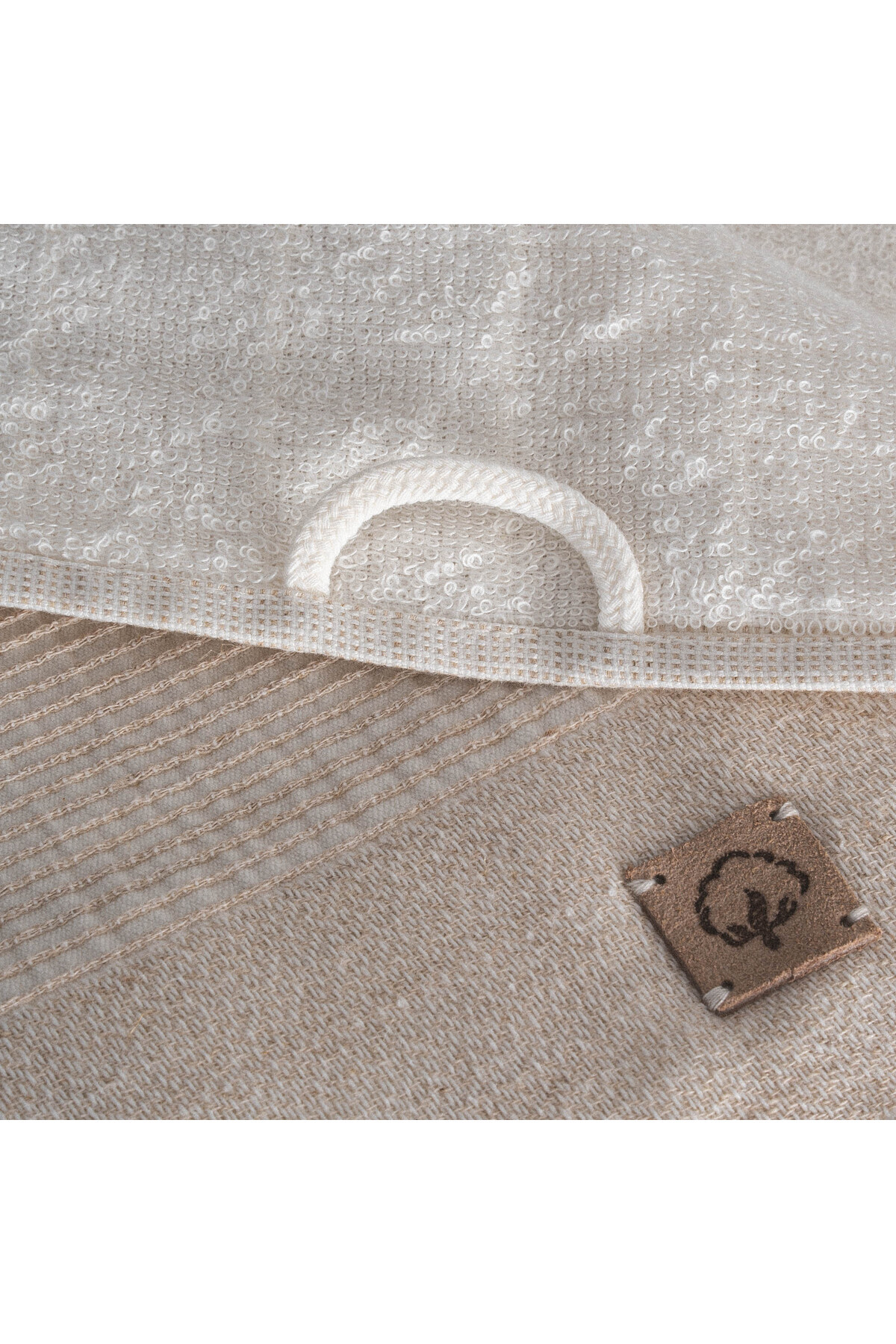 سرویس حوله سه تکه حسنا، ۱۰۰٪ کتان ارگانیک، بژ ملانژ