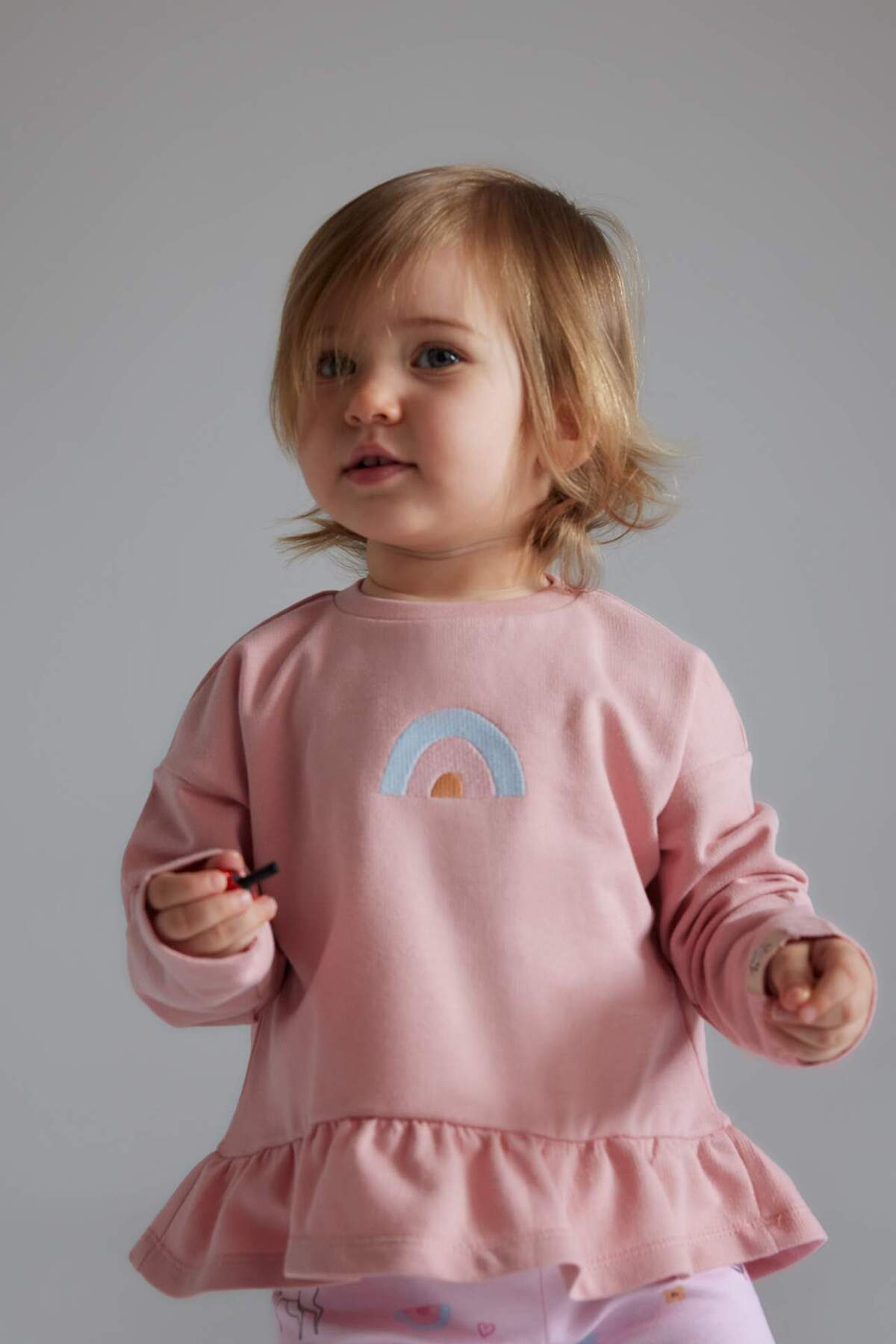 ست سویشرت دو تکه دخترانه طرح اسب تک شاخ، کمر کشی طرح دار، پایین D8699A525SP