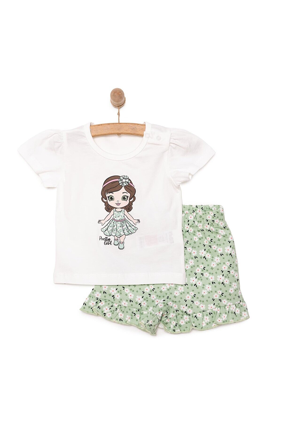 تیشرت و شلوارک دخترانه HelloBaby مدل Basic، ست دو تکه، یقه گرد، آستین کوتاه، رنگ ترکیبی