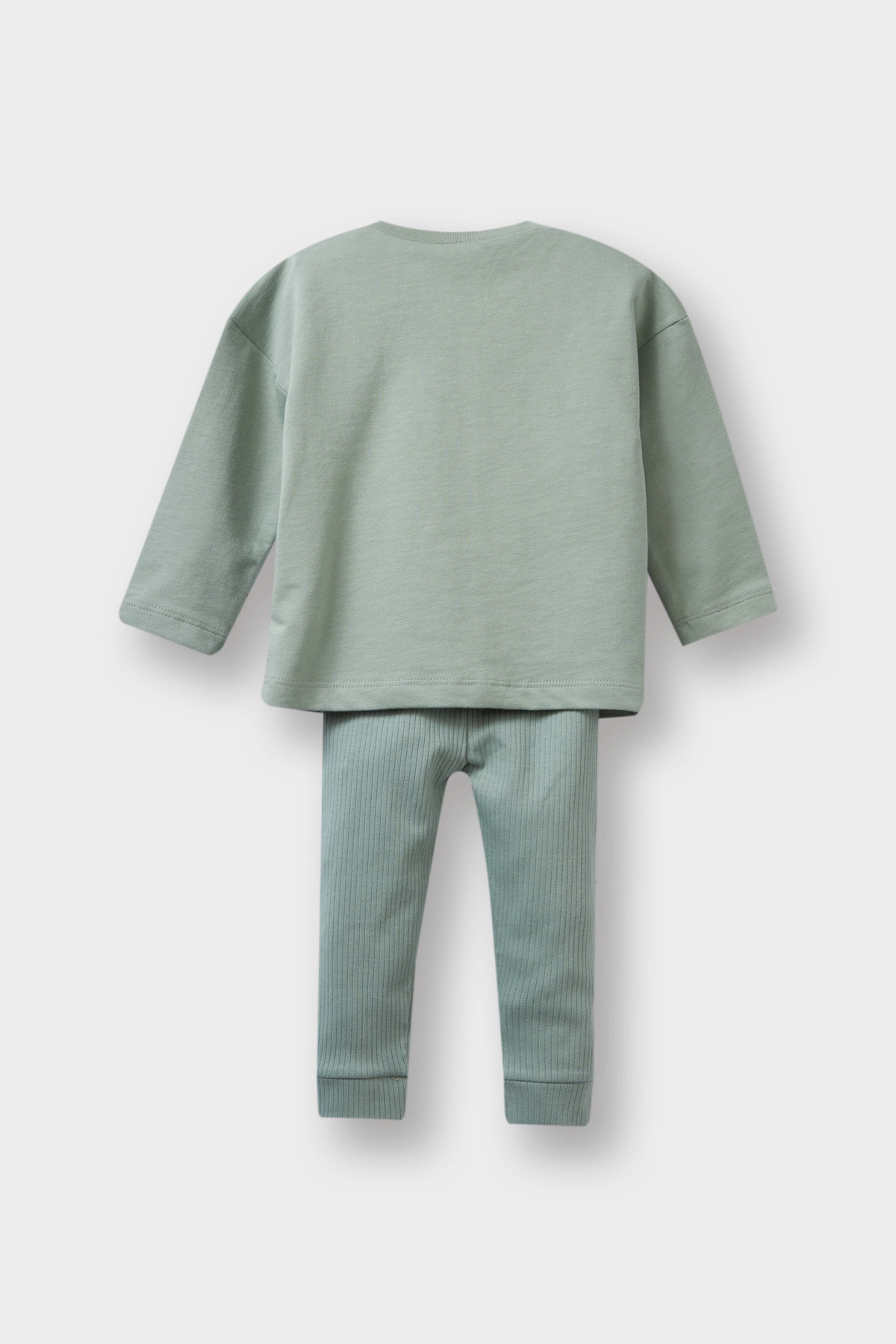 تیشرت آستین بلند طرح دایناسور پسرانه دو تکه با کمر کشی و پایین تنه E2398A525SP
