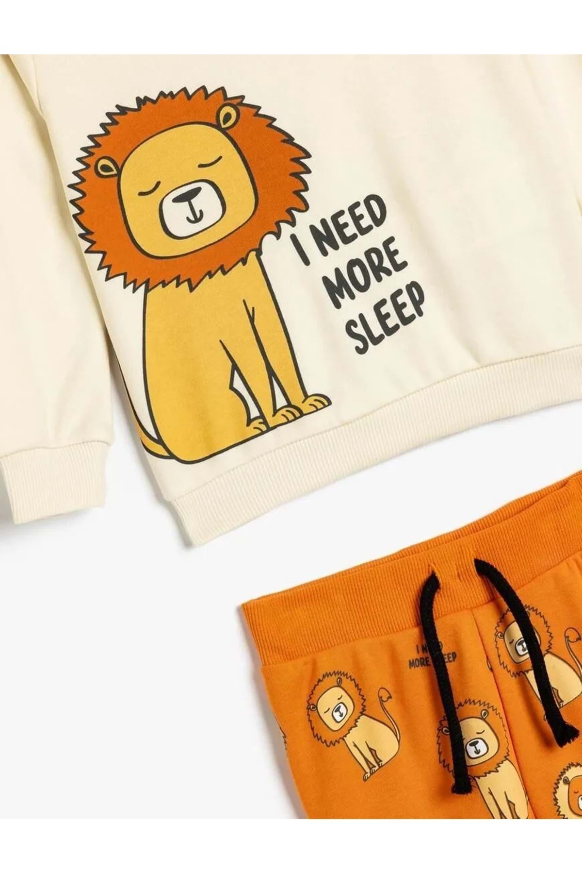 ست لباس خواب نوزادی پسرانه آستین بلند مدل 5wmb10046tk بژ