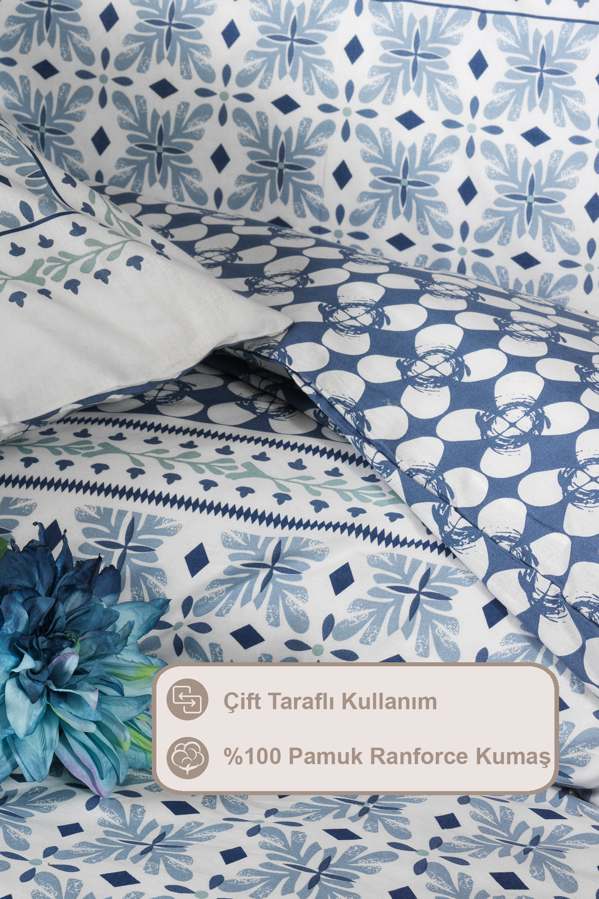 سرویس روتختی آماندا، یک نفره، ملحفه کشی رانفورس ۱۰۰٪ پنبه (۱۶۰x۲۲۰ سانتیمتر)، آبی