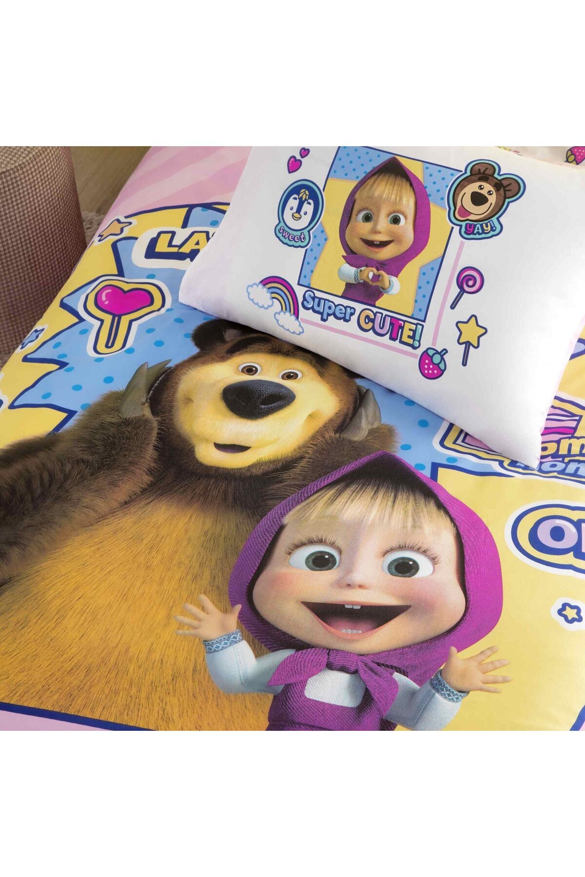 سرویس روتختی یک نفره طرح ماشا و خرسه مدل Super Cute از جنس پنبه و دارای مجوز