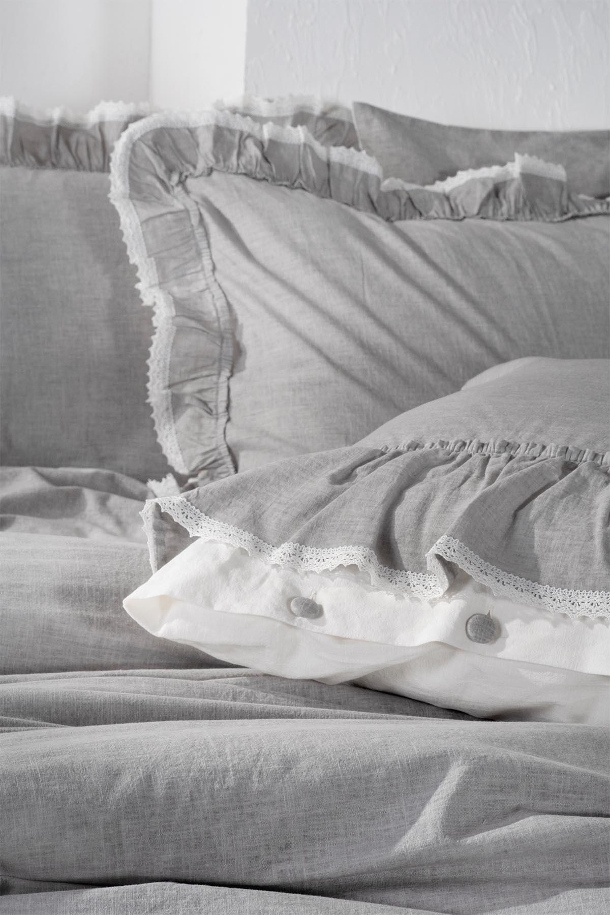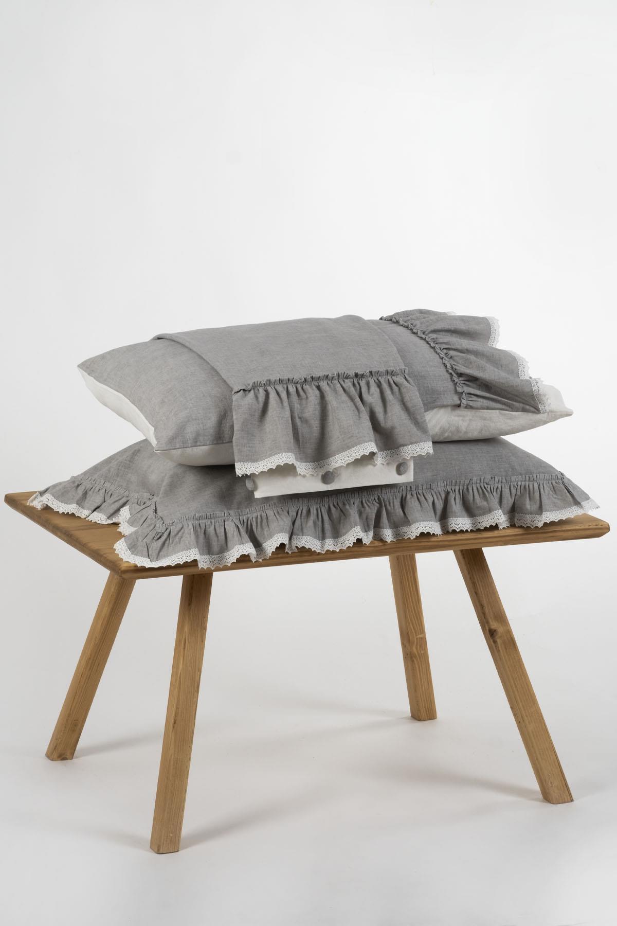 سرویس روتختی دو نفره لیزا، ۱۰۰٪ کتان ارگانیک، چیندار، خاکستری، ۲۰۰x۲۲۰ سانتیمتر