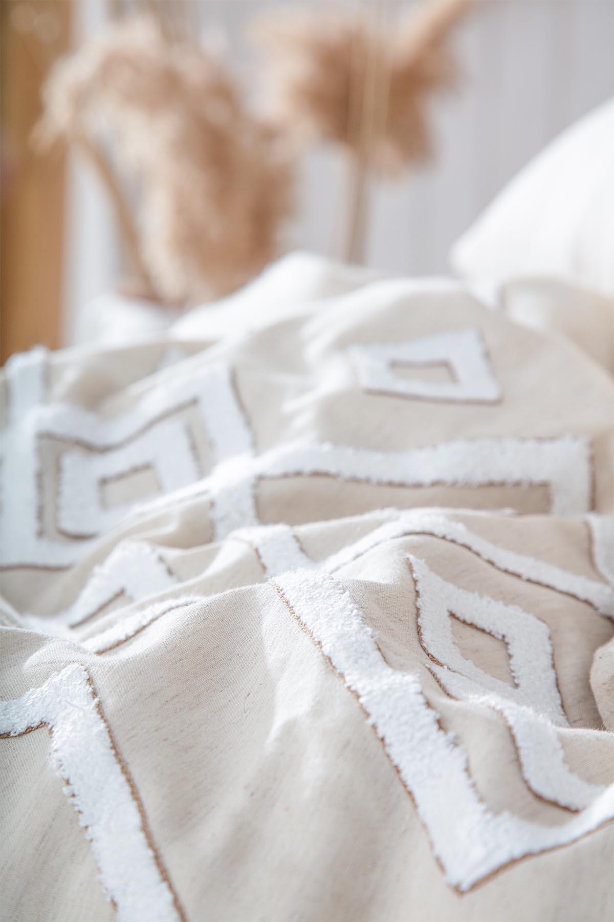 سرویس روتختی بزرگ تالیا، ۱۰۰٪ کتان، گلدوزی پانچ، کرم-بژ، ۲۴۰x۲۲۰ سانتیمتر