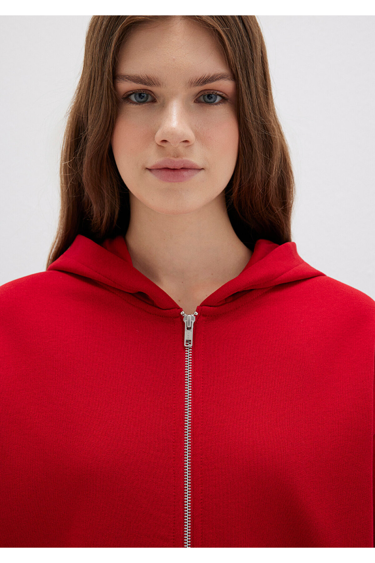 سویشرت قرمز ساده کلاهدار زیپدار ۱۶۱۱۷۷۵-۸۲۰۵۴