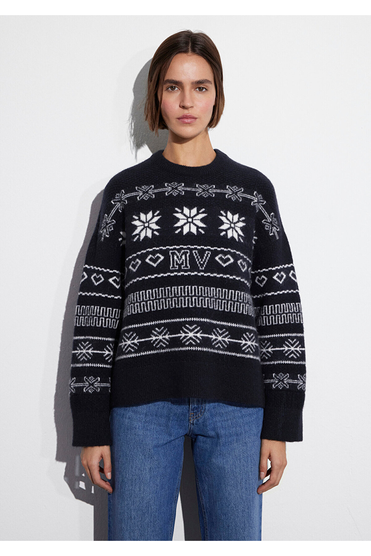 ژاکت سرمهای طرح سال نو سایز بزرگ / برش عریض ۱۷۱۰۸۰۴-۸۴۳۷۱