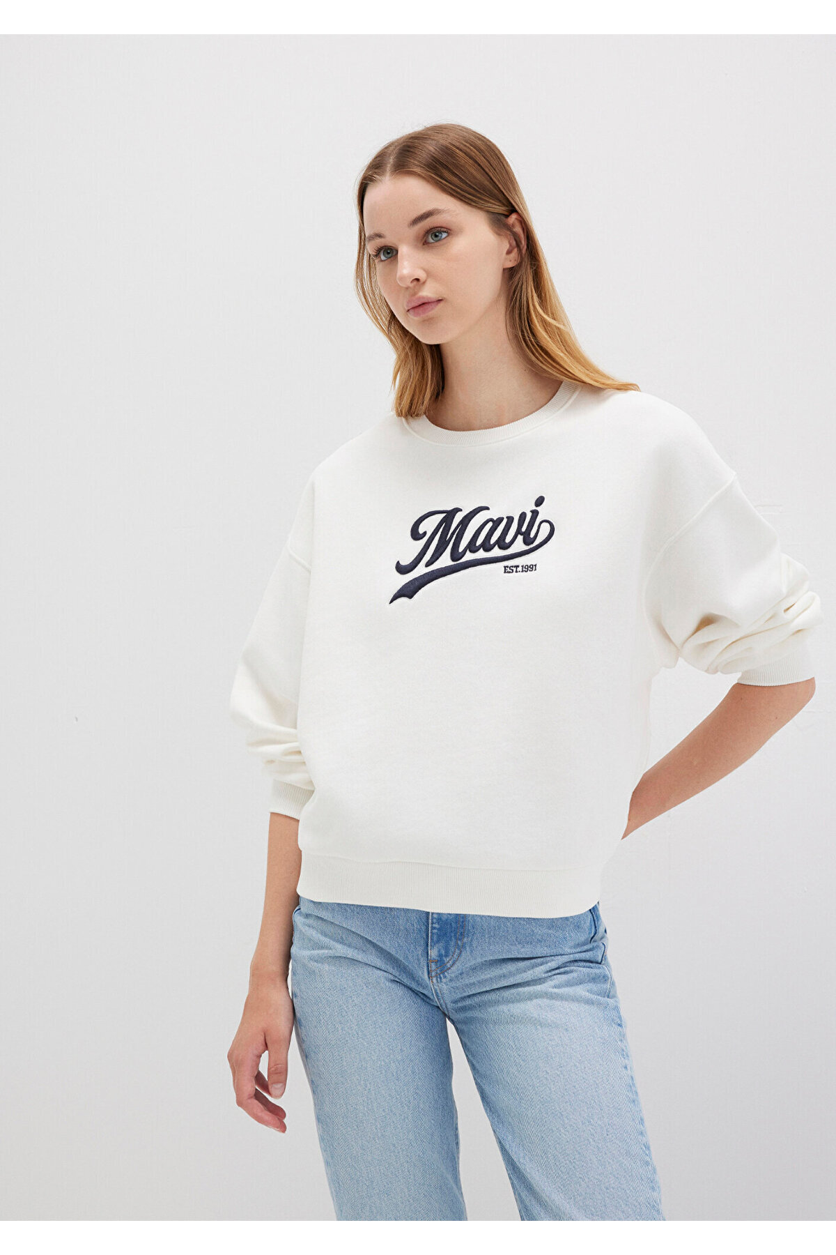 سویشرت زنانه سفید ماویMavi | SWT.KD.0280 اورجینال