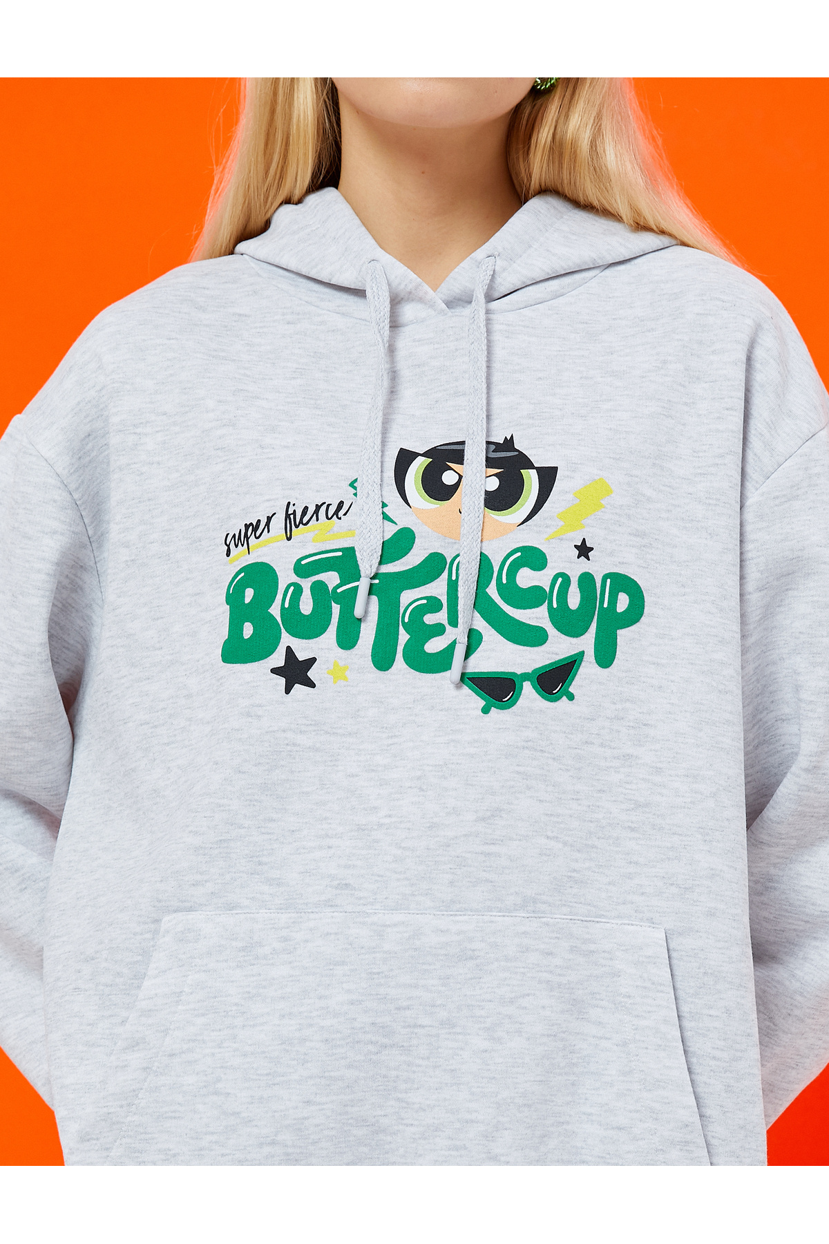سویشرت دخترانه پاورپاف دارای مجوز، کلاهدار سایز بزرگ، دارای لایه داخلی از جنس پشم پلار