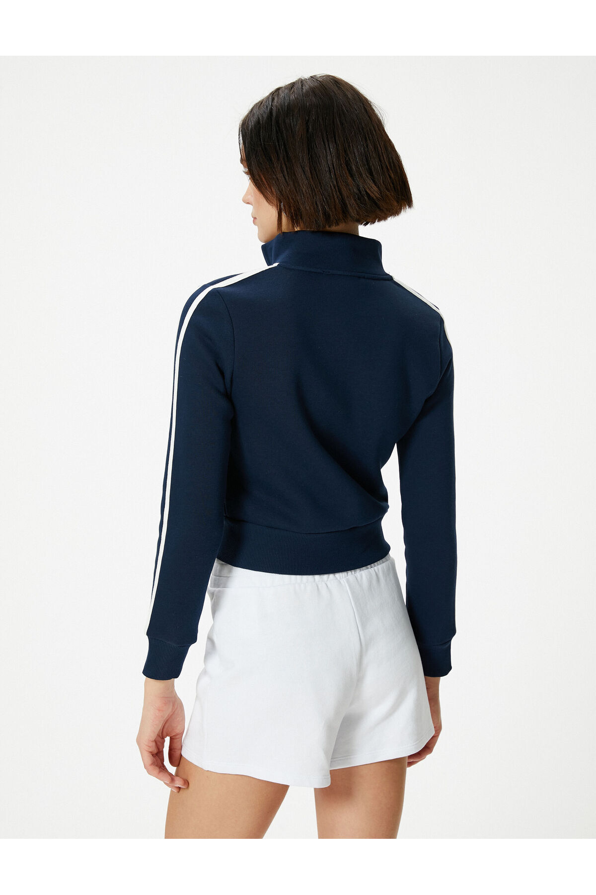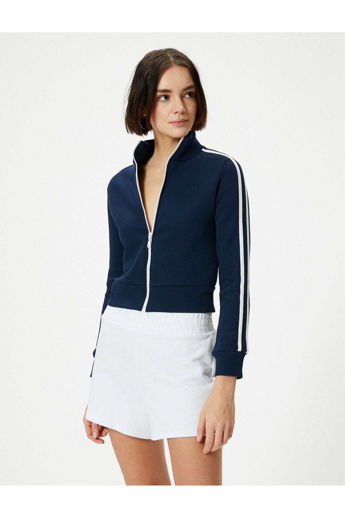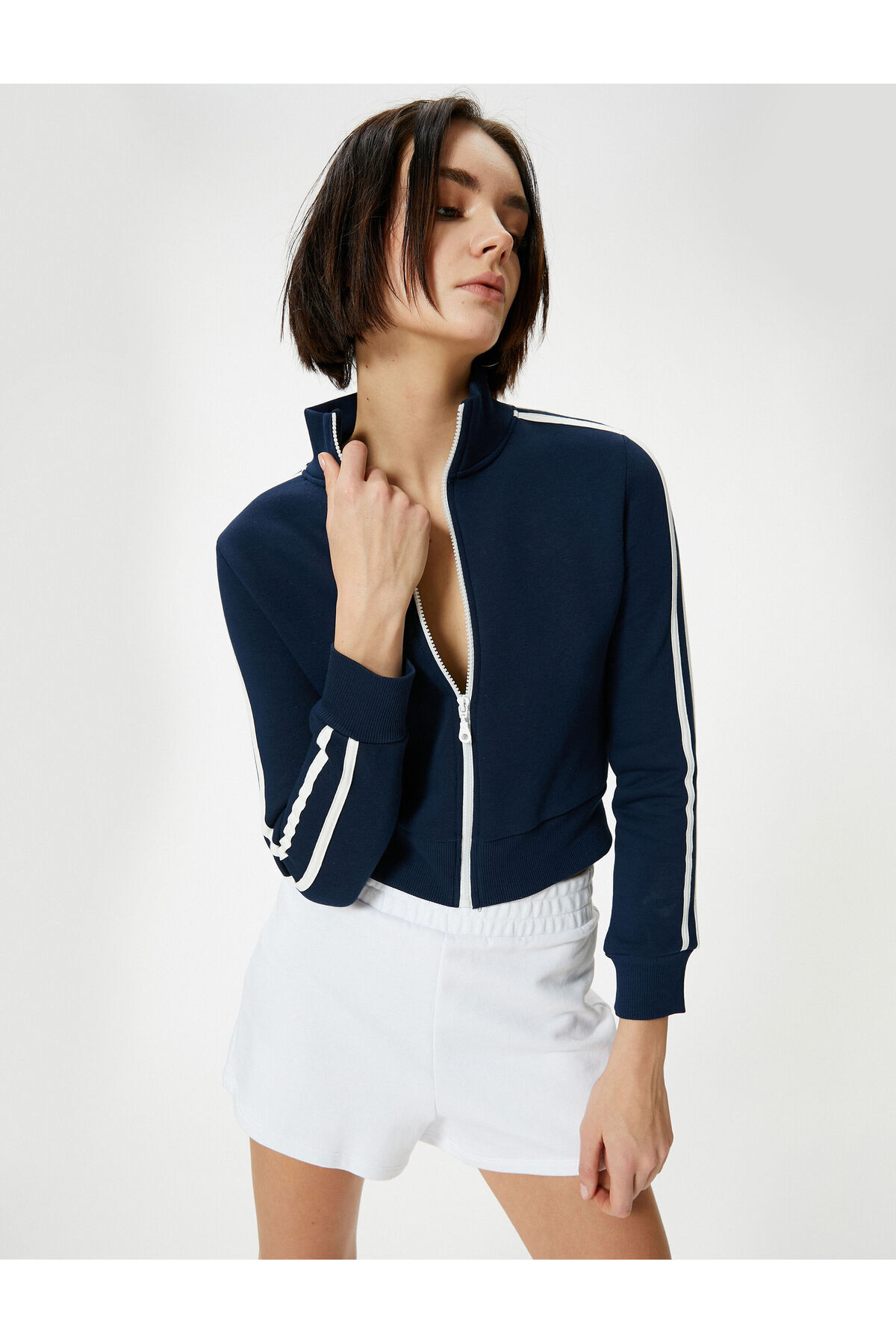 سویشرت زیپدار برجسته، یقه ایستاده، آستین بلند، راه راه
