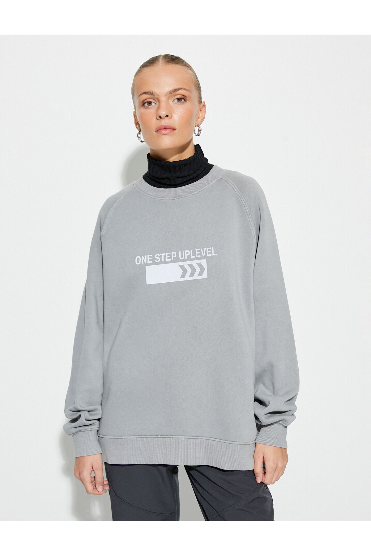 سویشرت زنانه خاکستری کوتونKoton | 4WAK10391EK اورجینال