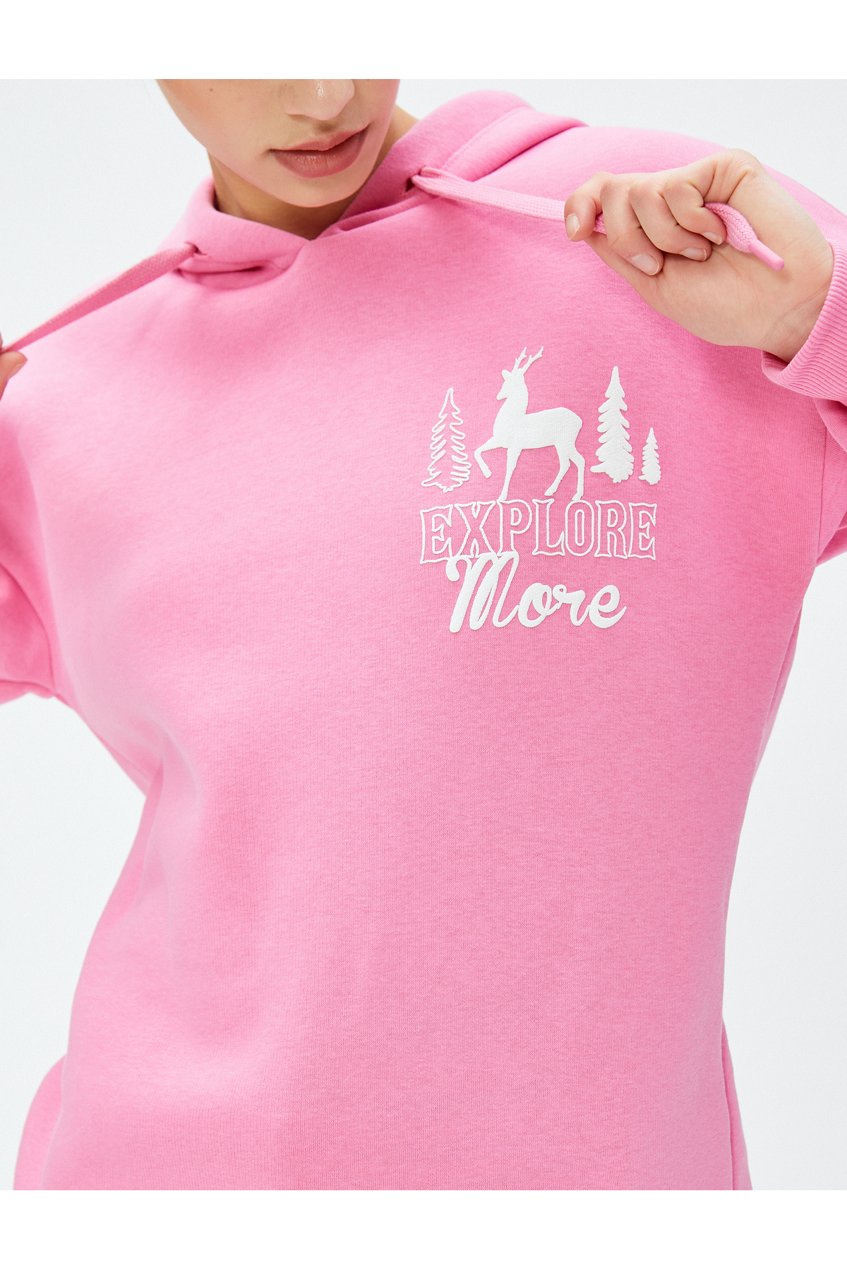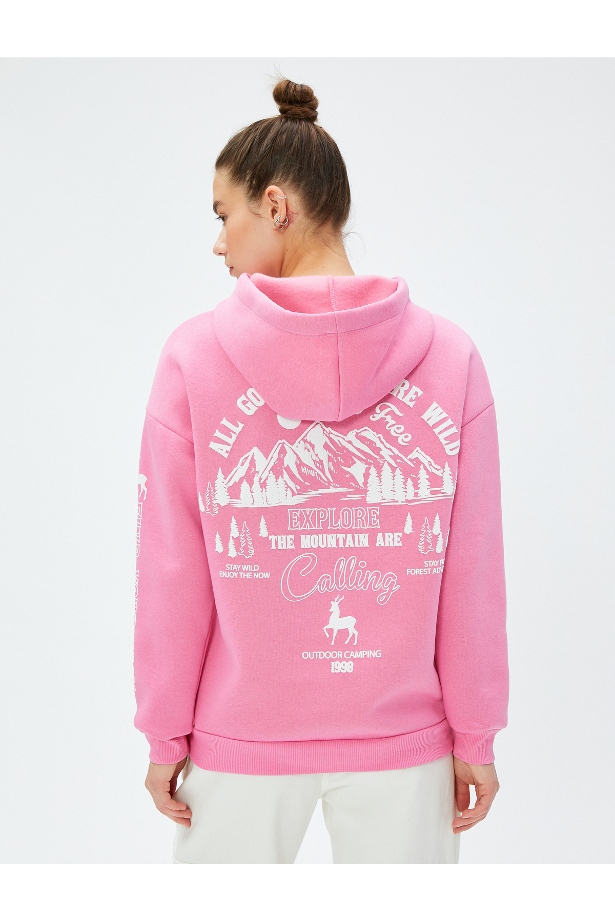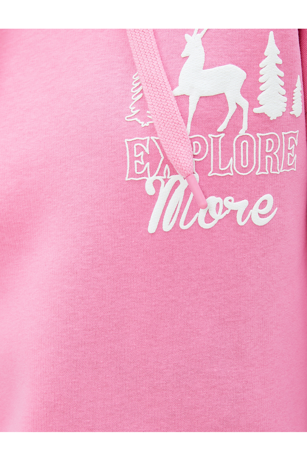 سویشرت آستین بلند طرح‌دار کلاه‌دار بزرگ برجسته