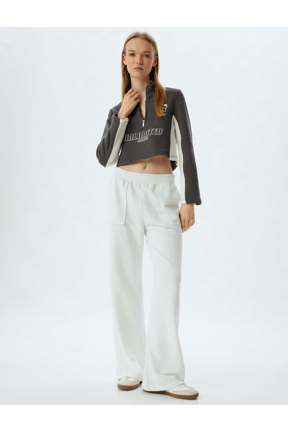 سویشرت کوتاه با زیپ نیمدامن، طرح شعار، یقه ایستاده، برجسته