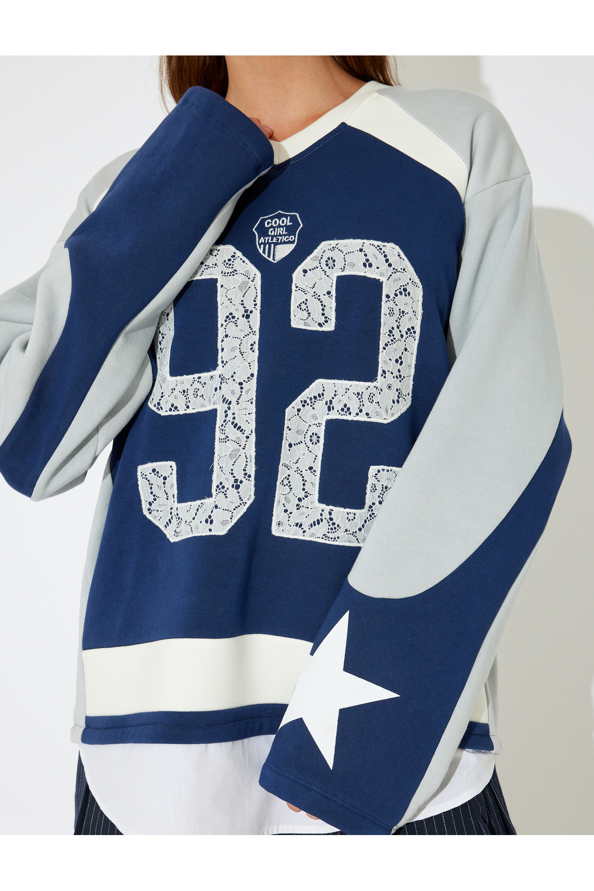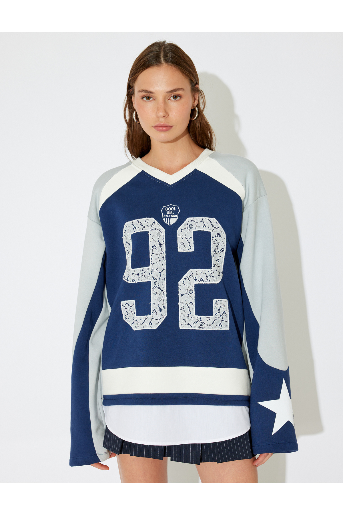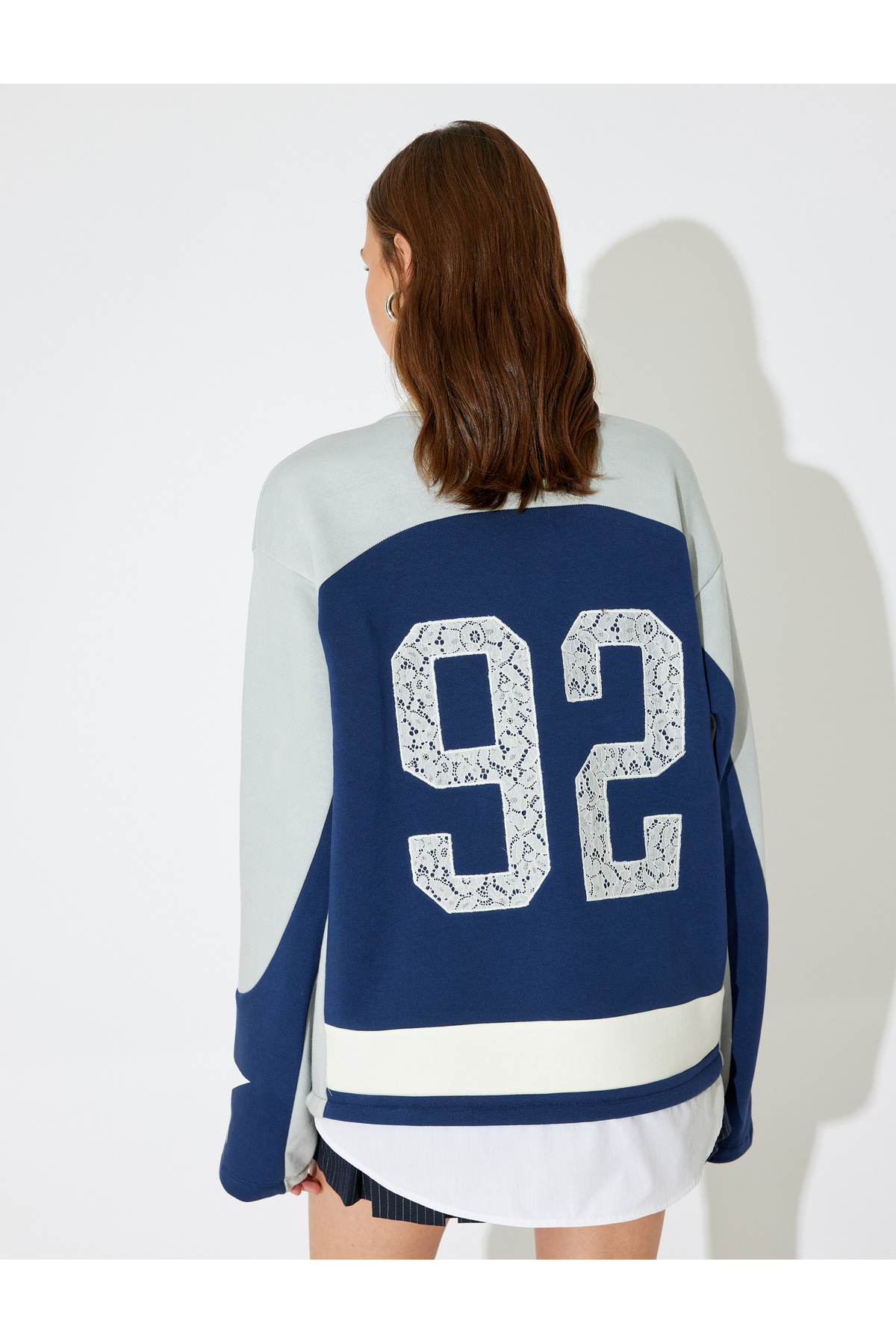 سویشرت کالج یقه هفت طرحدار رنگی با پشت برجسته و چاپشده