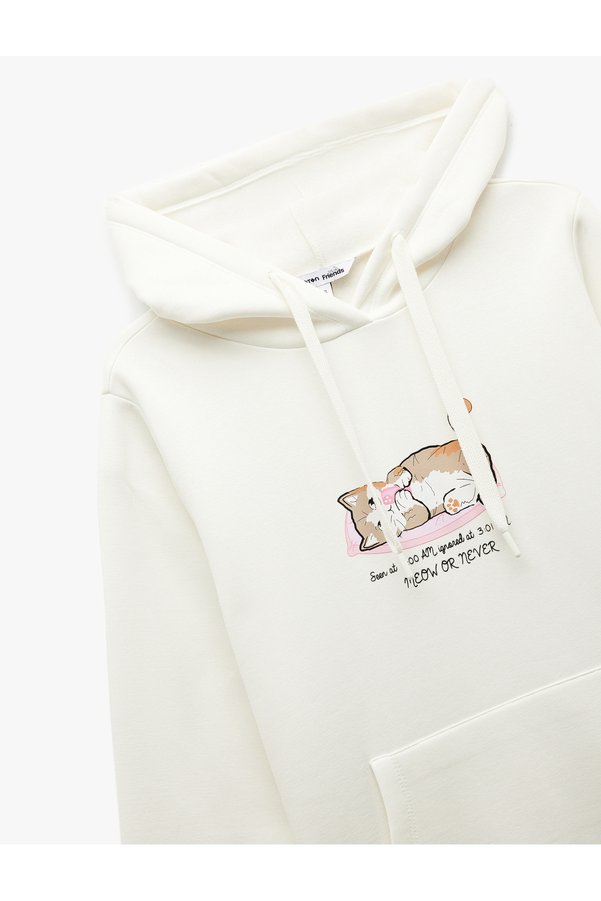 سویشرت کلاهدار طرح گربه با جیب برجسته کانگورو سه نخی