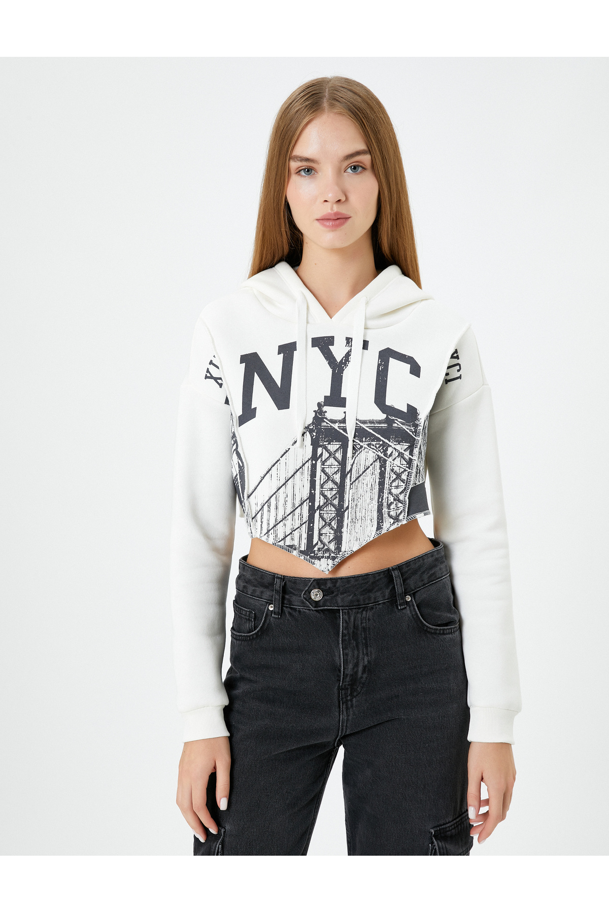 سویشرت کلاهدار برجسته، برش نامتقارن، طرح نیویورک