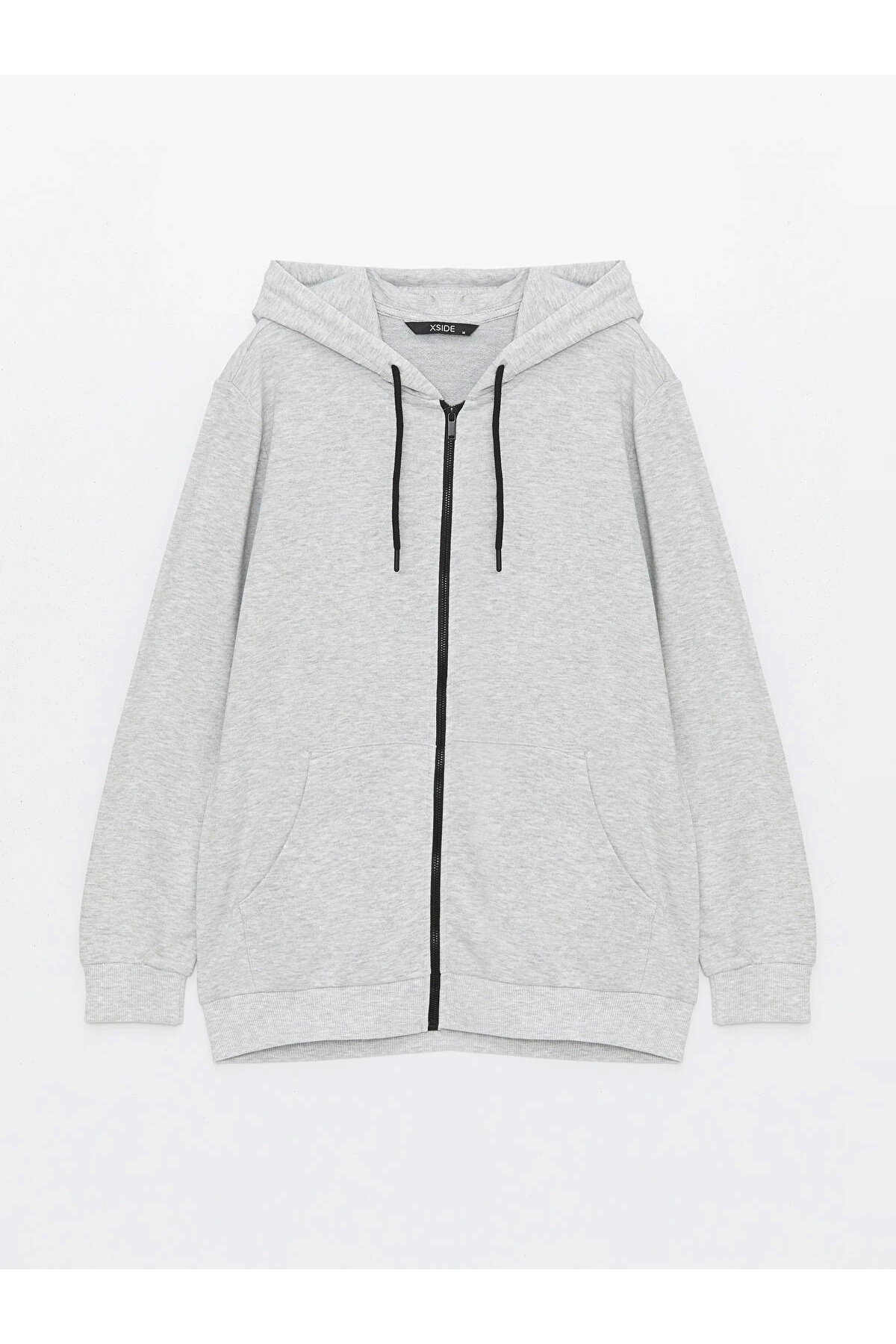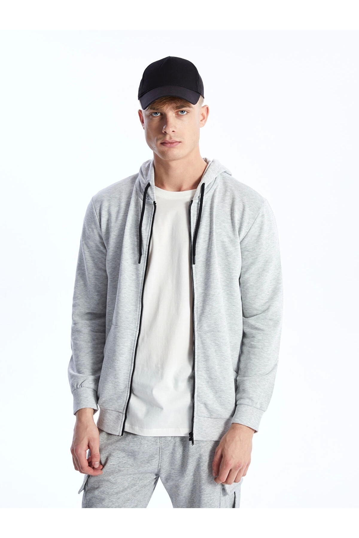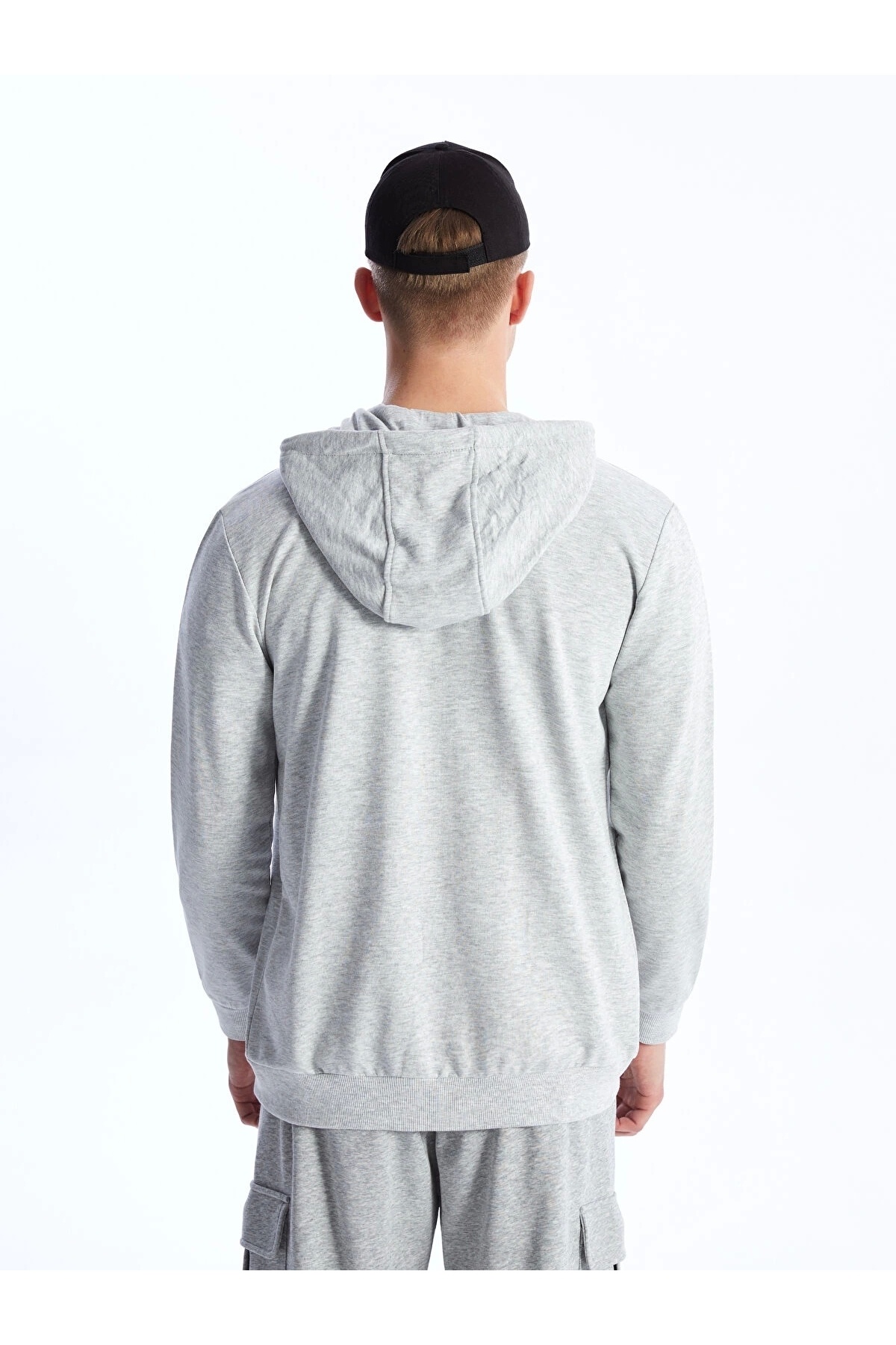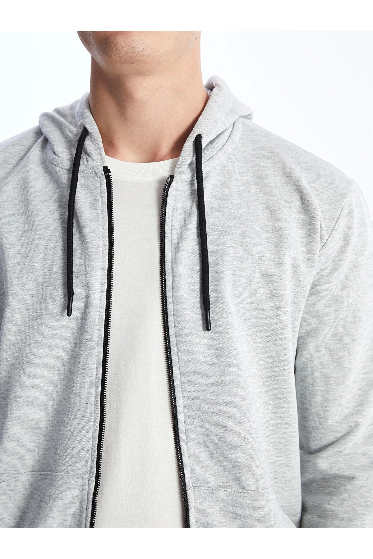 سویشرت زیپدار مردانه آستین بلند کلاهدار خاکستری کژوال LCW