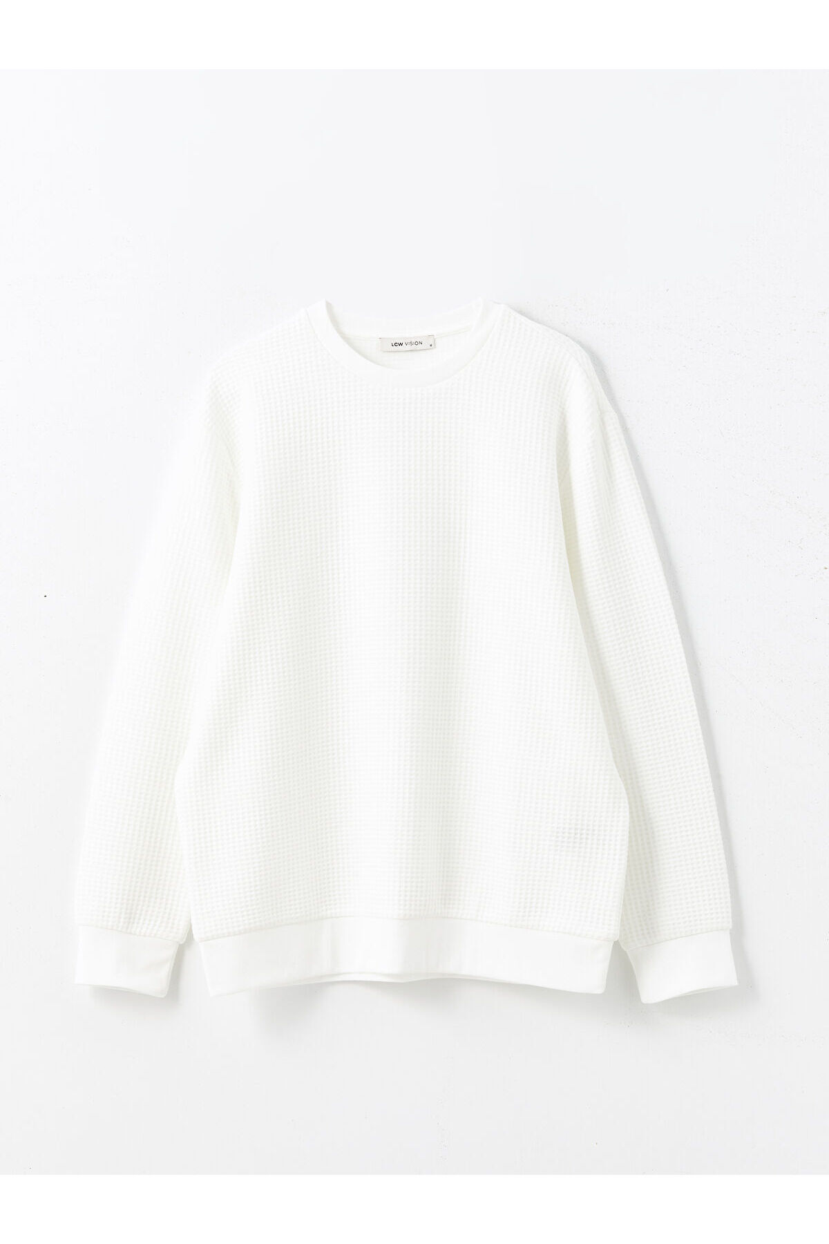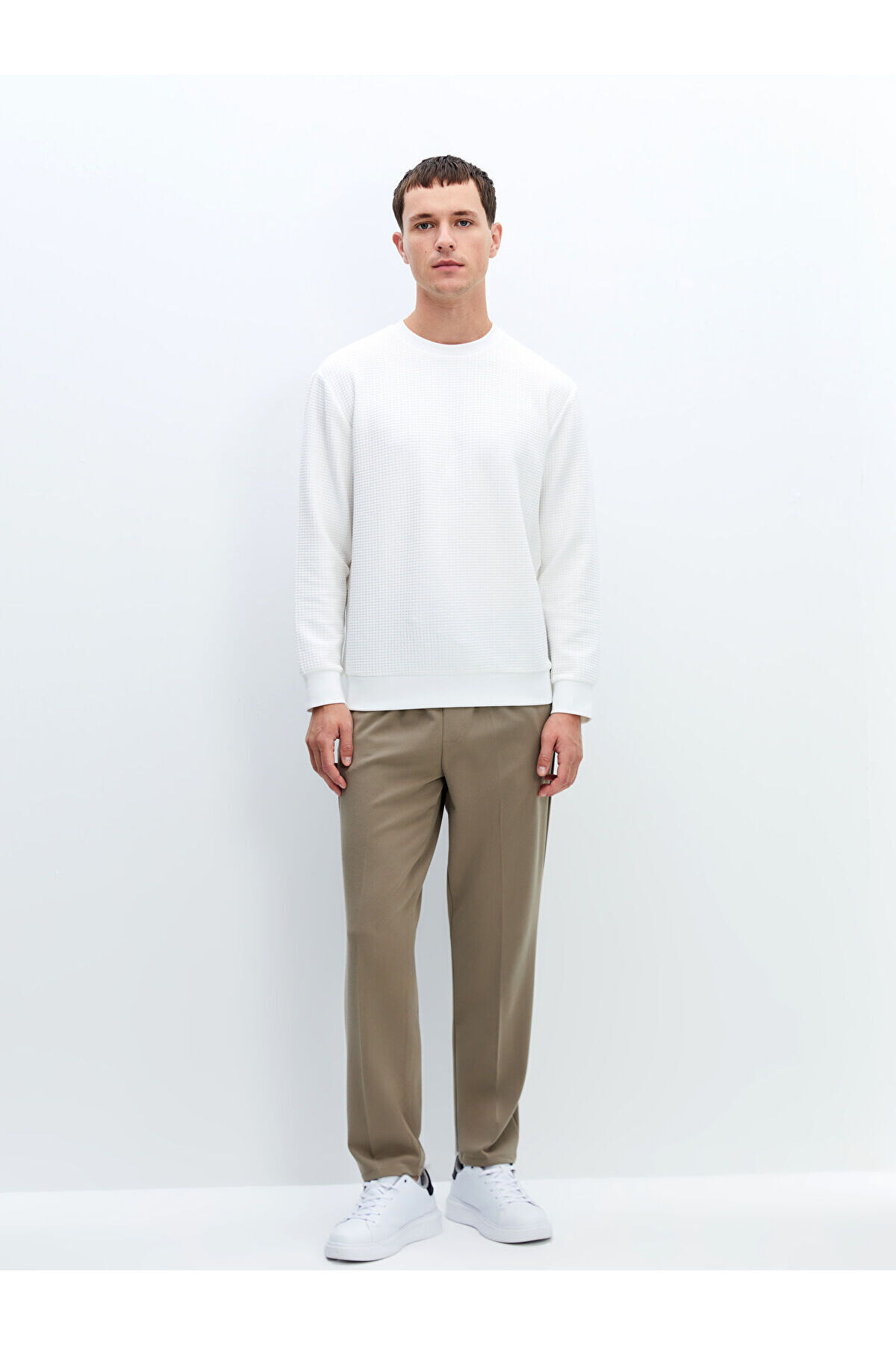 سویشرت بافتدار مردانه یقه گرد آستین بلند LCW Vision Ecru